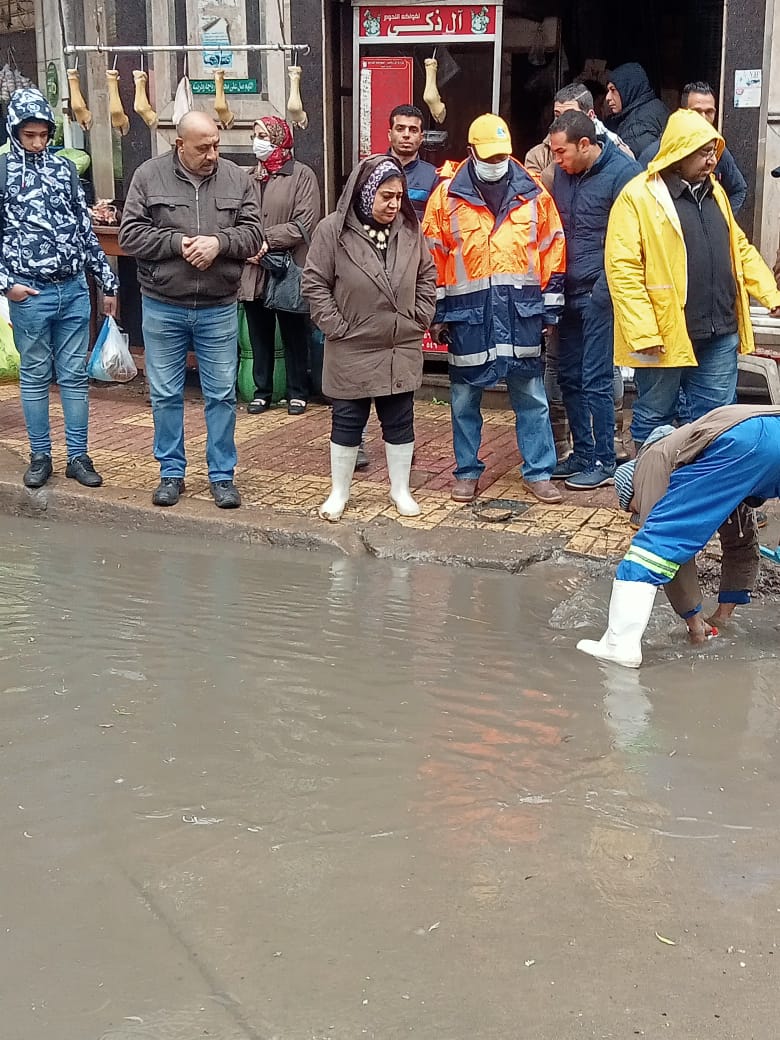 وفى حى وسط، خاضت عزة سعد رئيس حي وسط جولاتها التفقدية فى كافة أنحاء الدائرة مرتدية حذاء الكزلك، بسبب تراكمات مياة الأمطار وارتفاعها