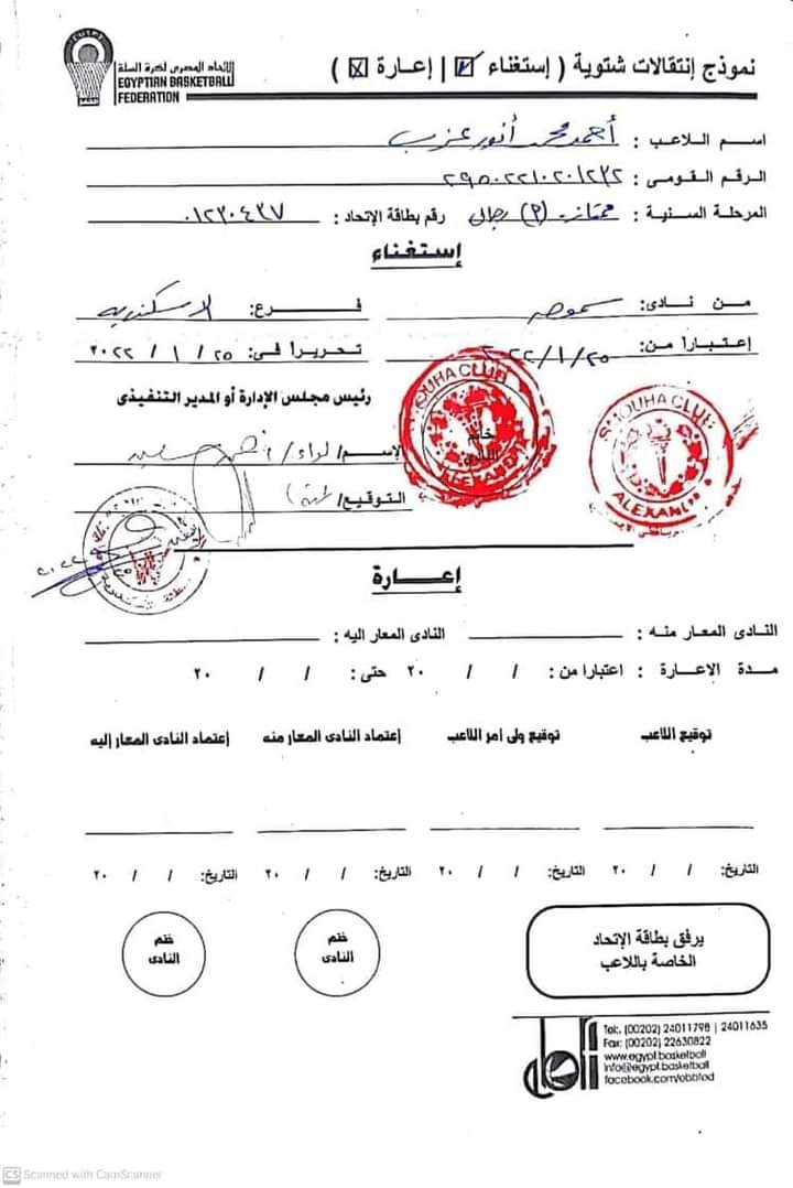 تسلم نادي الزمالك الاستغناء الخاص بصفقة الفريق الأول لكرة السلة أحمد عزب المنتقل حديثًا من فريق سموحة.