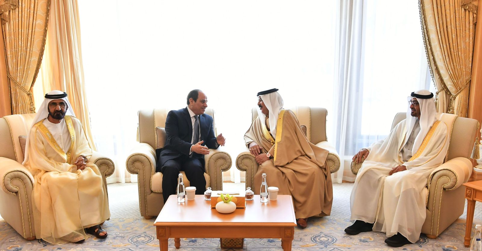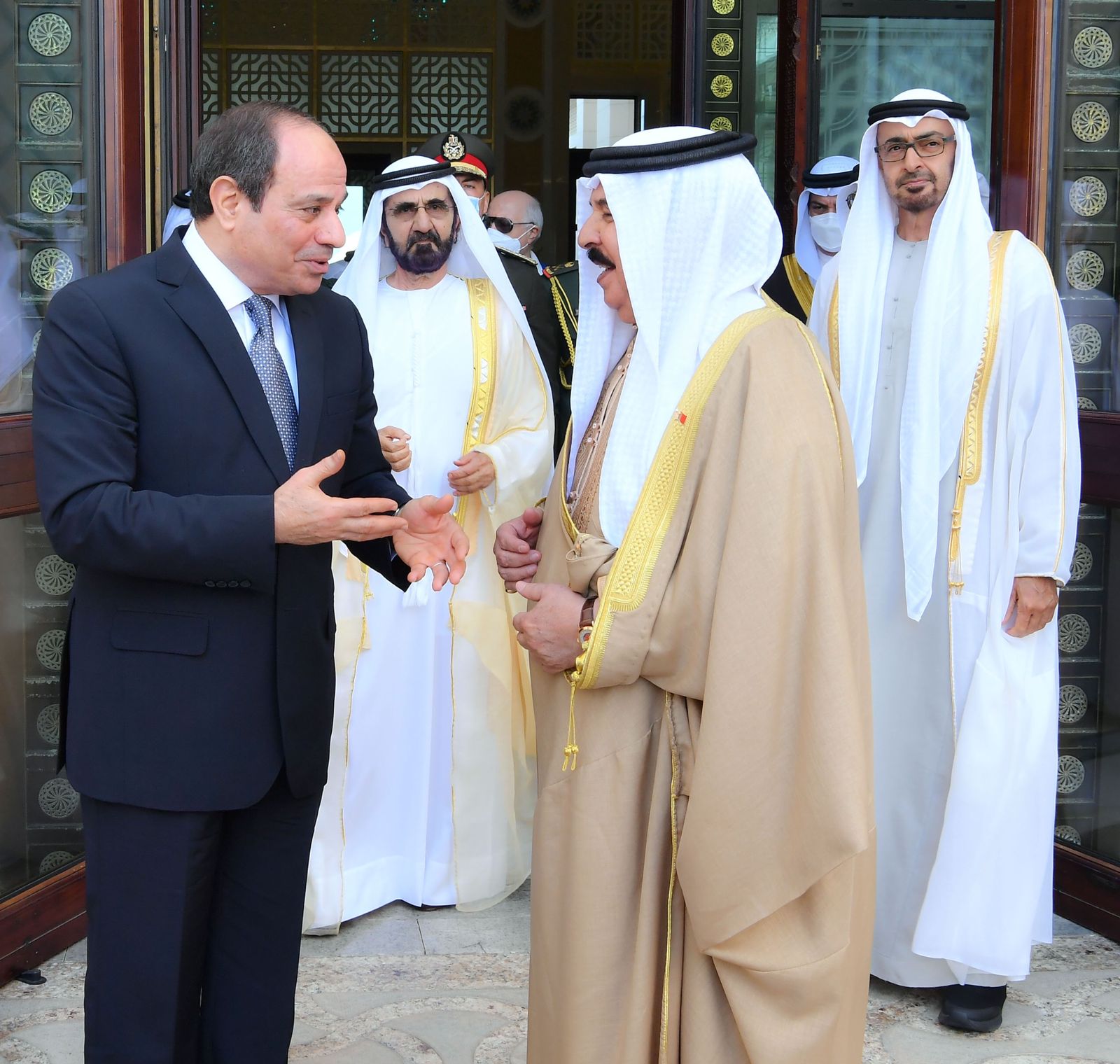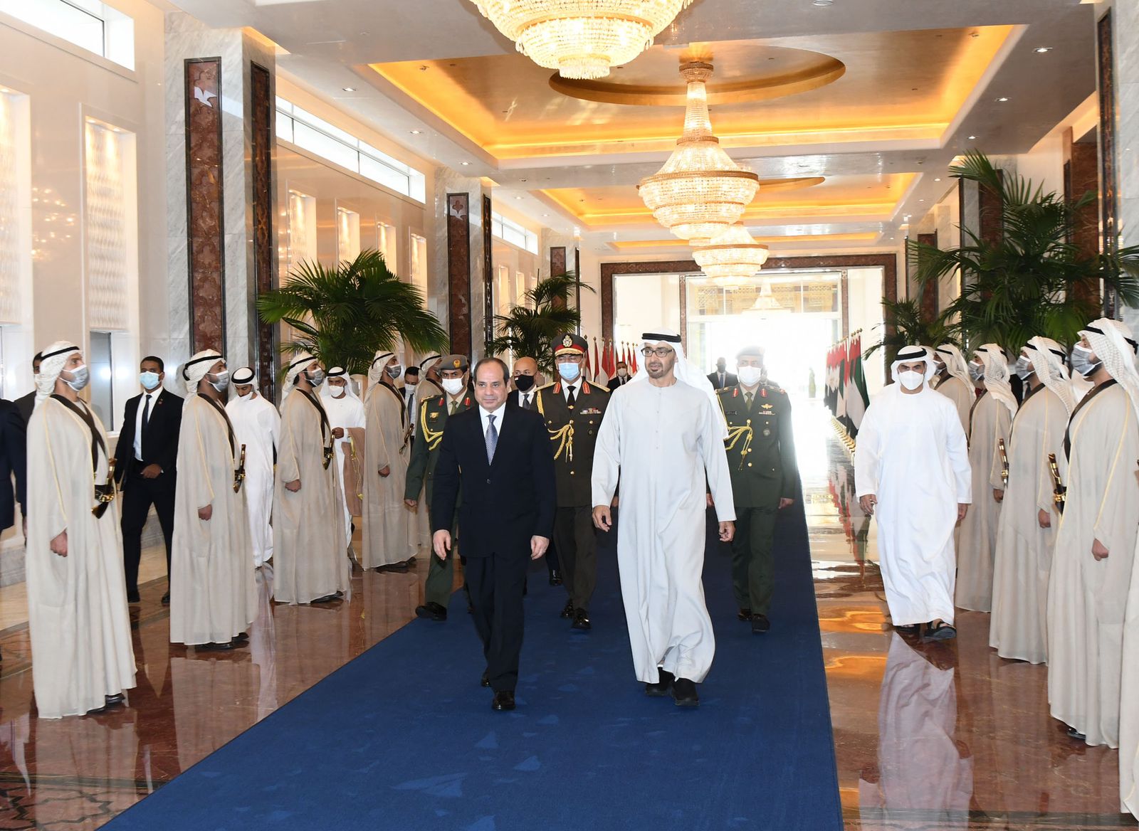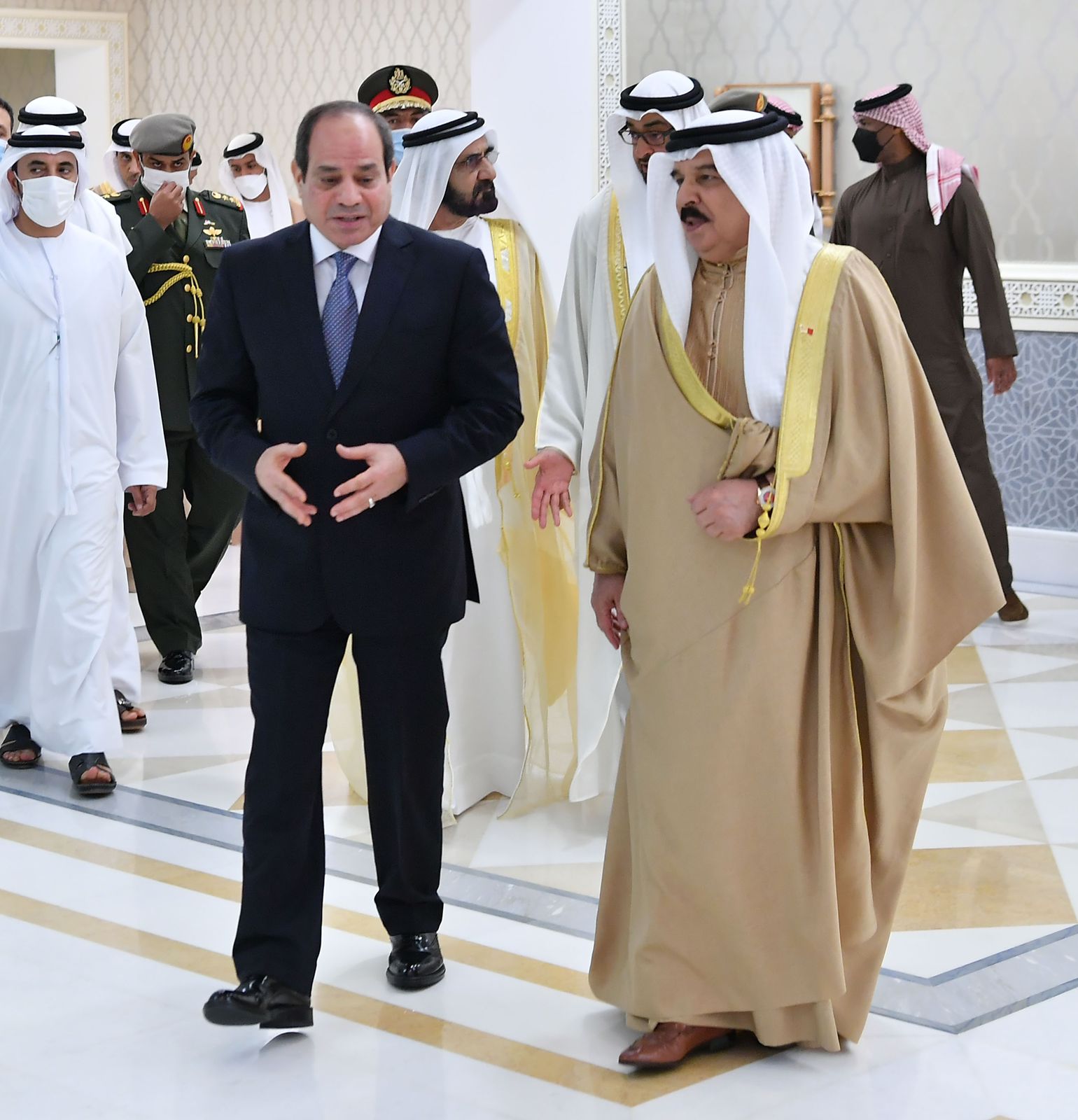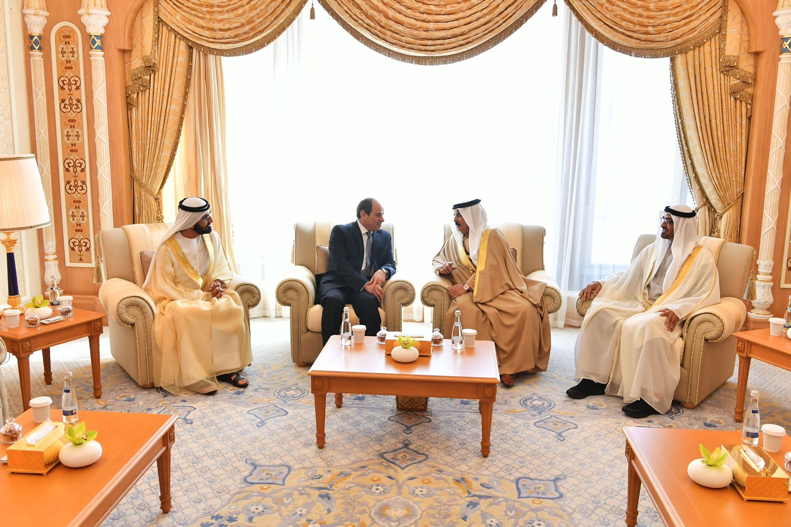 شارك الرئيس عبد الفتاح السيسي في جلسة مباحثات رباعية في قصر الوطن بأبو ظبي، مع أشقائه سمو الشيخ محمد بن زايد آل نهيان ولي عهد أبو ظبي وجلالة الملك حمد بن عيسى ملك مملكة البحرين، وسمو الشيخ محمد بن راشد آل مكتوم نائب رئيس دولة الإمارات أمير إمارة دبي، حيث تم التباحث بشأن تطورات القضايا الإقليمية ذات الاهتمام المتبادل، وسبل تعزيز التنسيق والتعاون بين الأشقاء لدفع آليات العمل العربي المشترك في مواجهة التحديات الراهنة التي تواجه المنطقة.