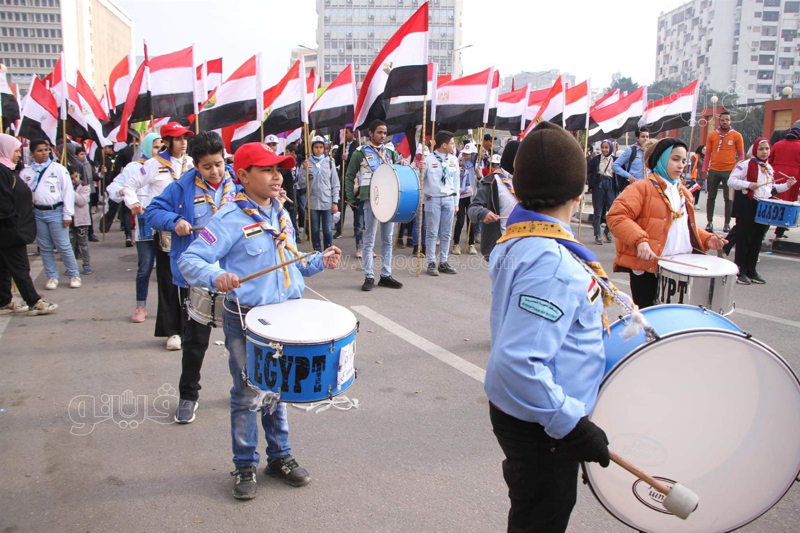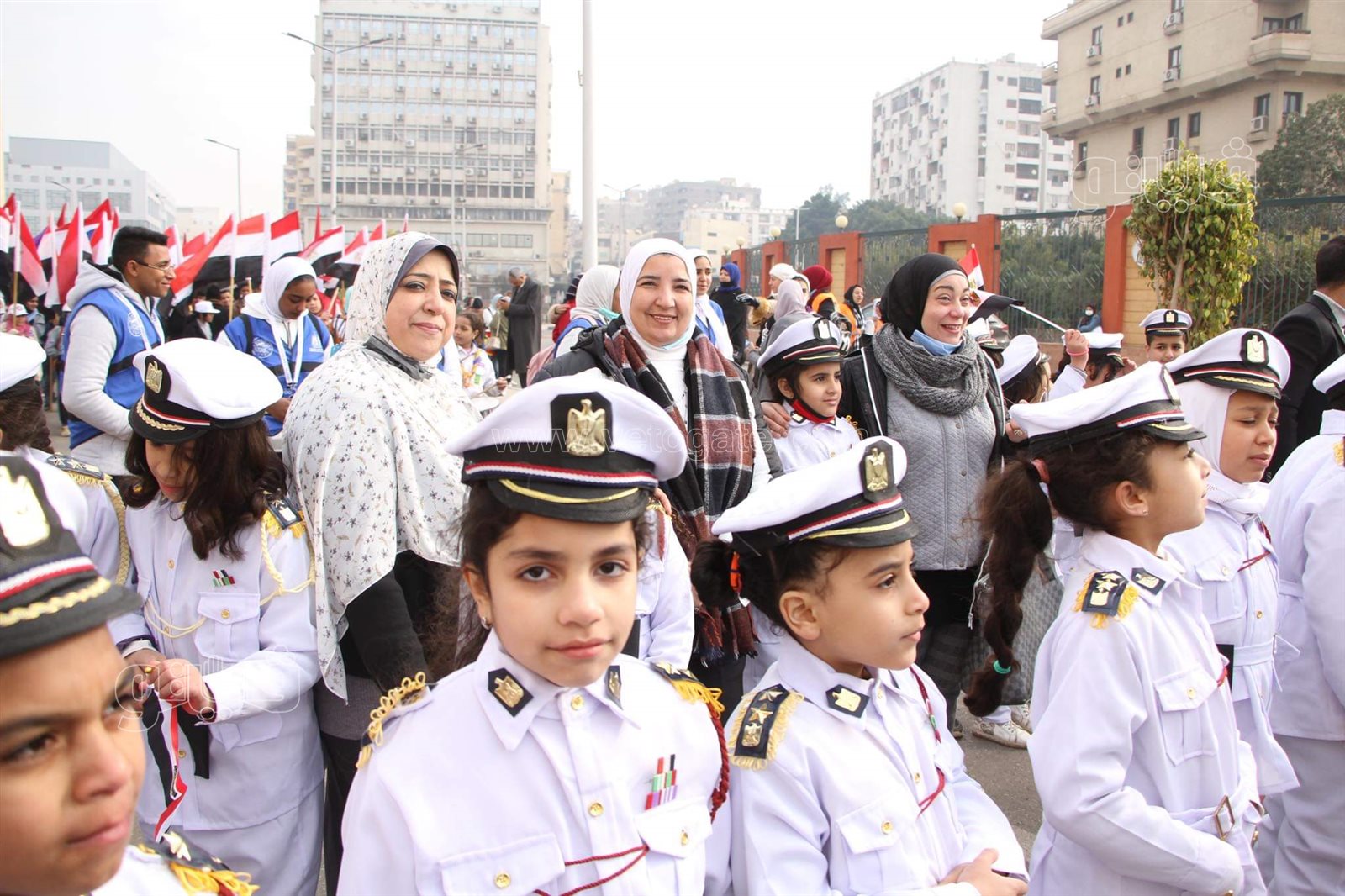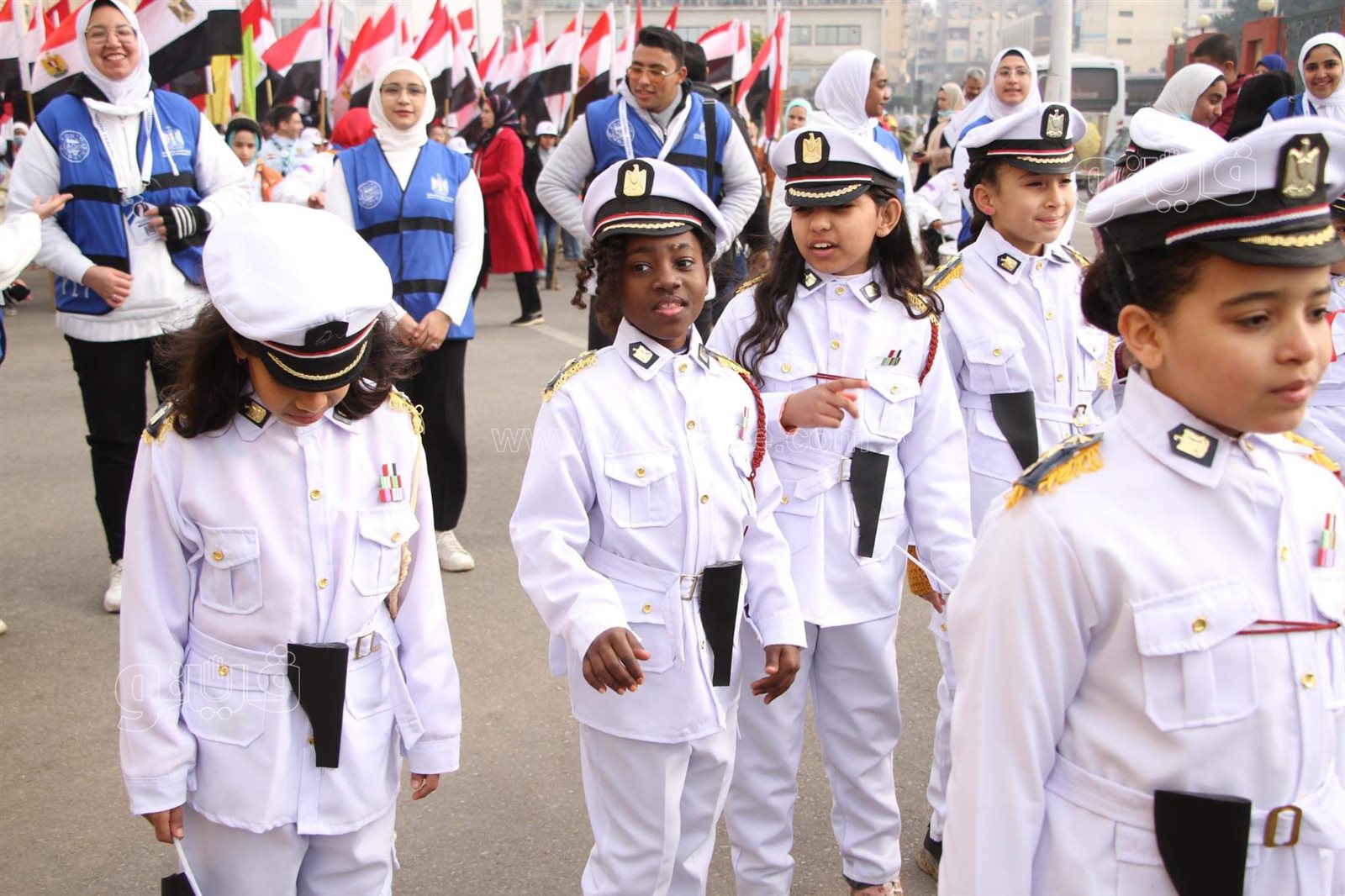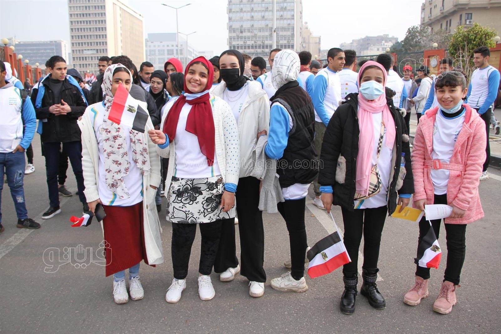 وشهد الماراثون انضمام أطفال بزي الشرطة وأعلام مصر احتفالا بعيد الشرطة الـ70 من خلال المشاركة بالماراثون الرياضي.