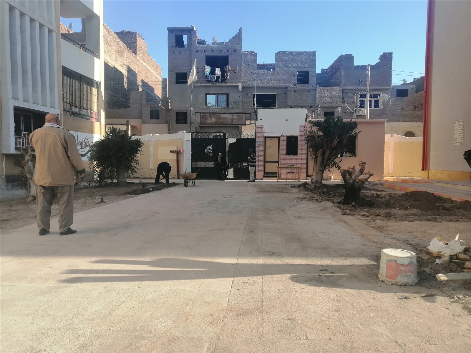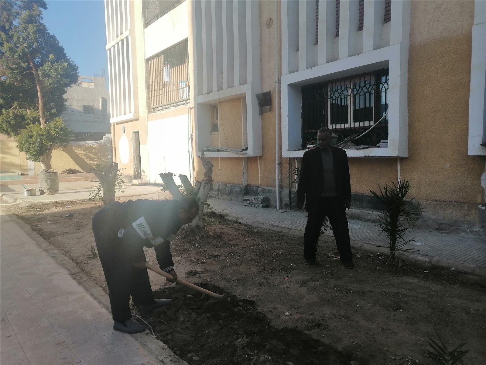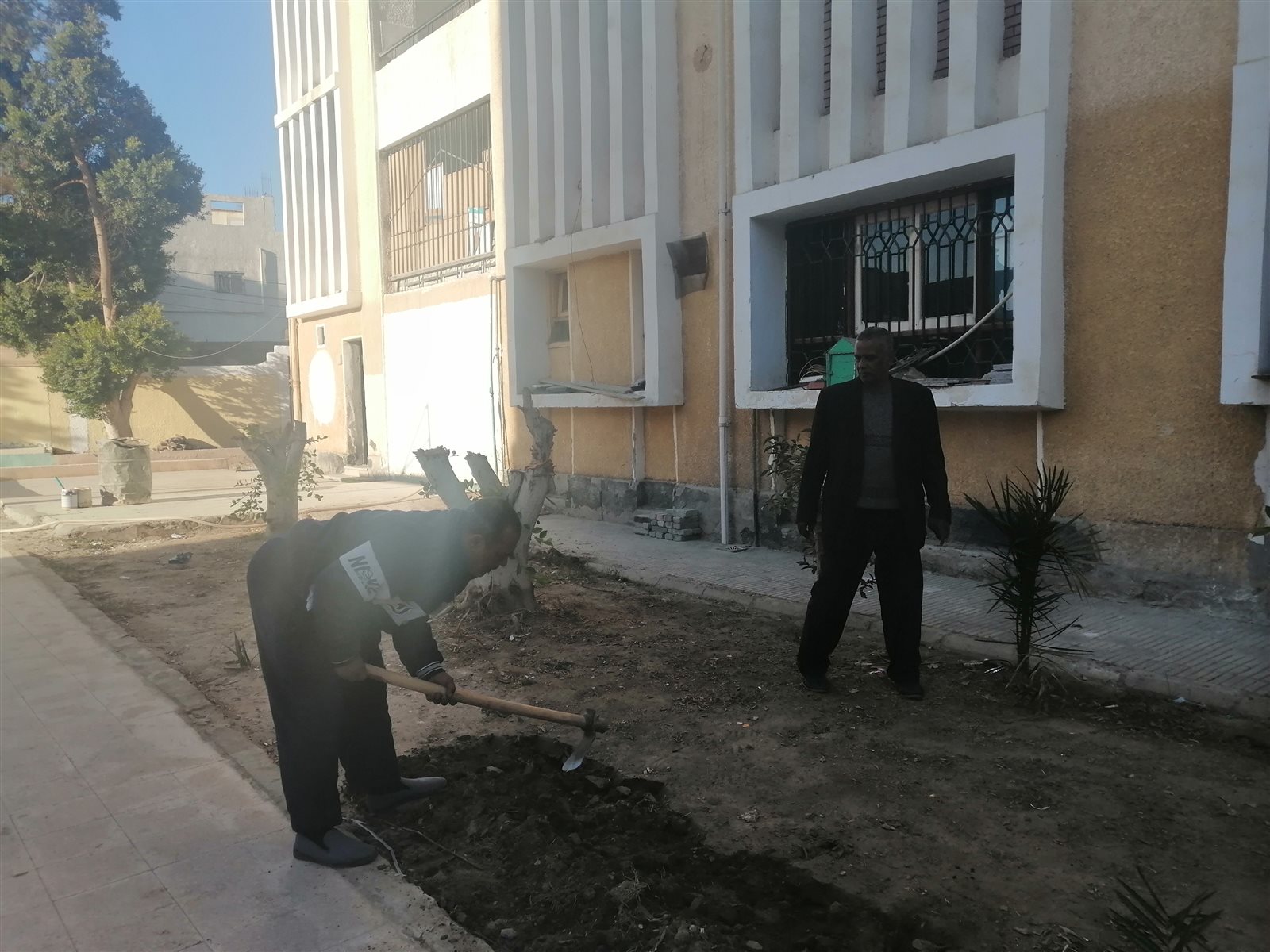 يشارك عبدالراضي الرفاعي، مدير مدرسة المعنا الابتدائية المشتركة، التابعة لمحافظة قنا، بالعمل مع المعلمين في زراعة وتطوير حديقة وفناء المدرسة بعد انتهاء أعمال إنشاء المبنى الجديد المقرر العمل به خلال النصف الثاني من الدراسة والذي سوف يسهم بنصيب كبير في استيعاب الأعداد.
