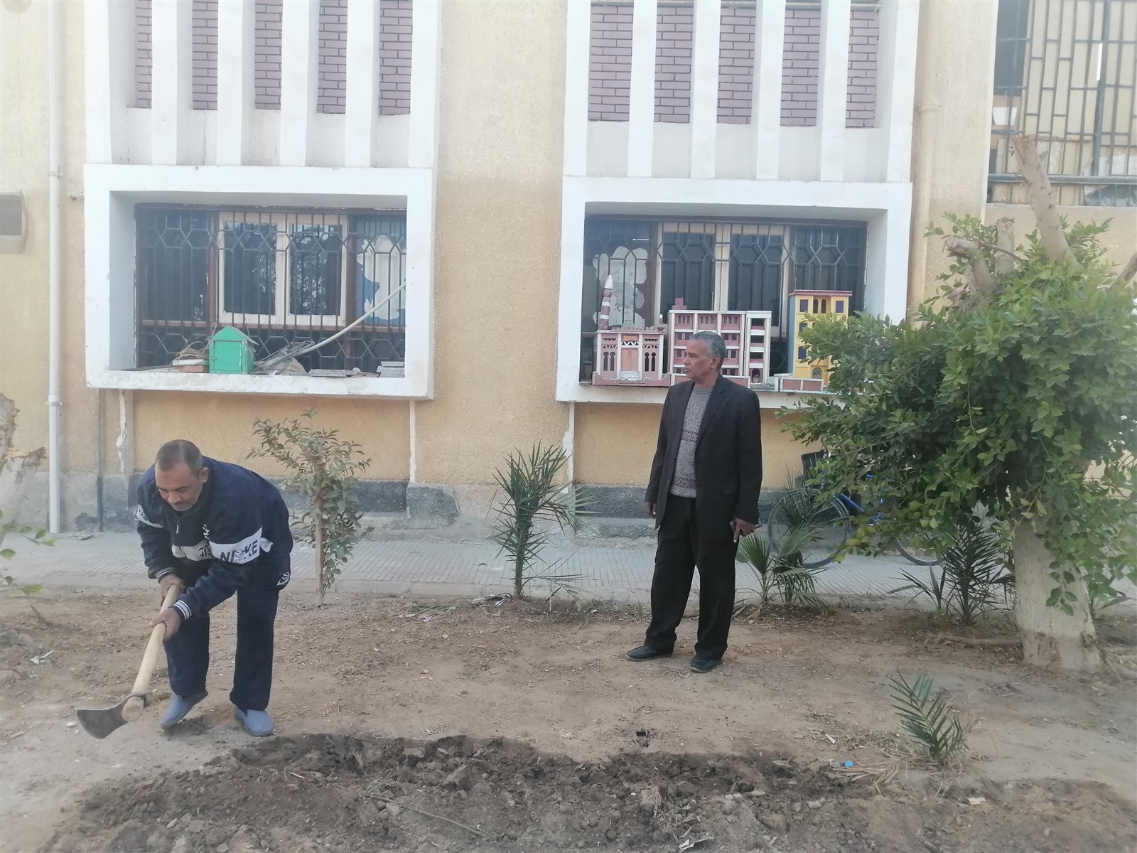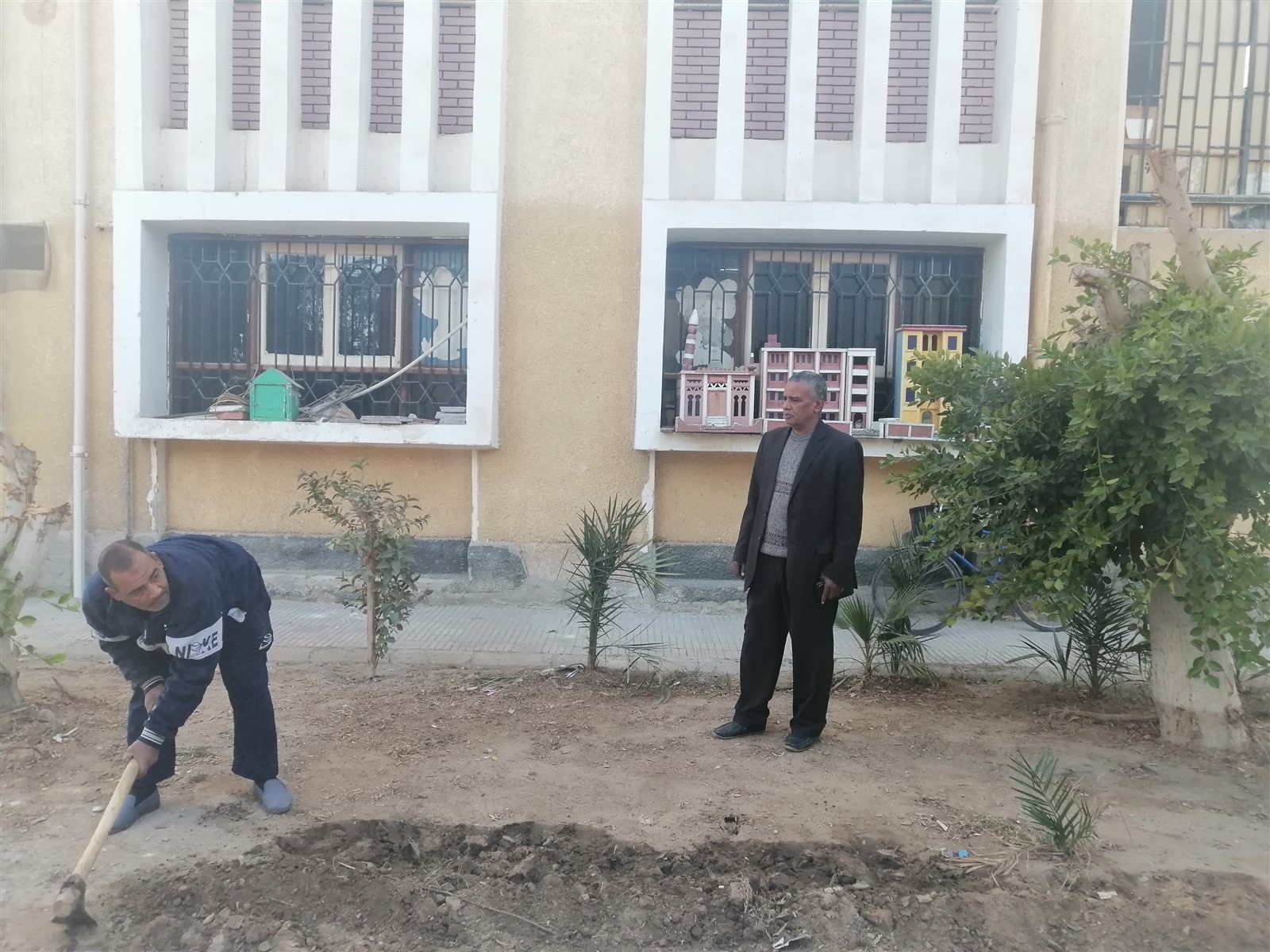 مدير مدرسة بقنا يشارك في زراعة وتطوير الفناء والحديقة | صور