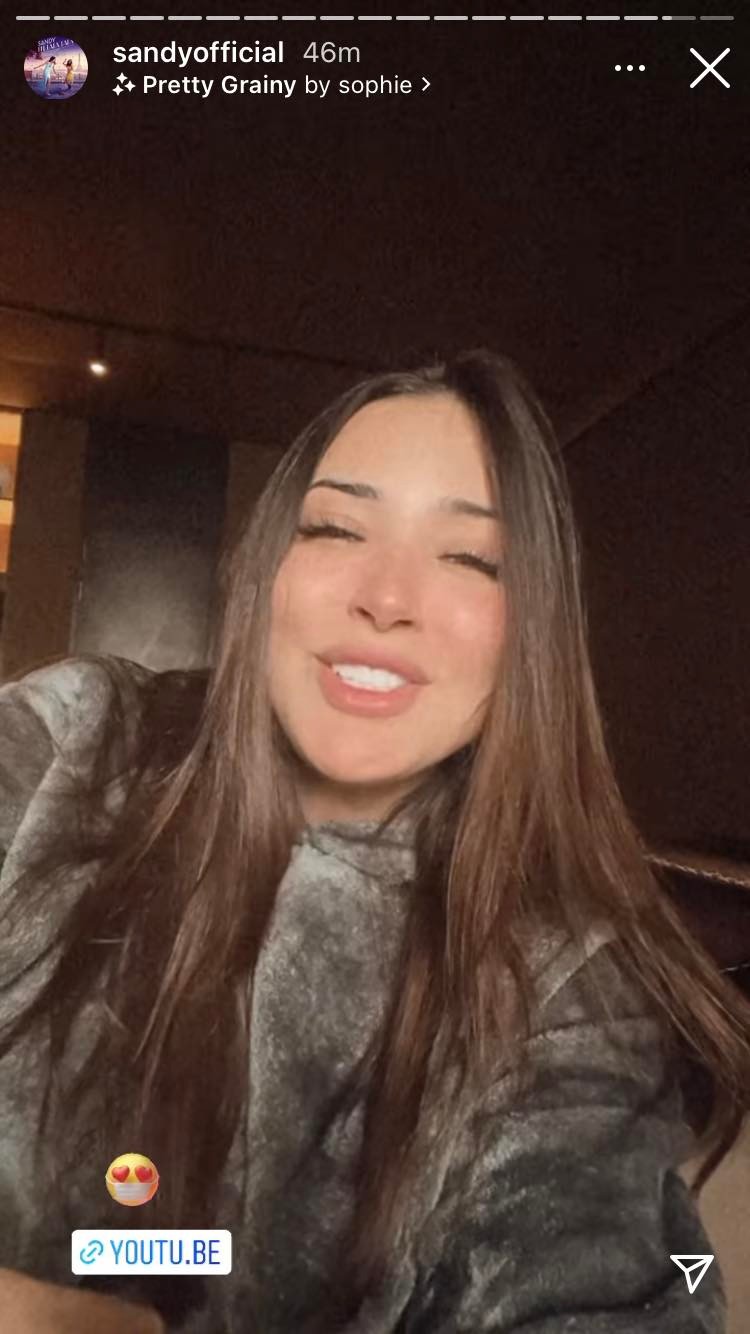 شاركت المطربة ساندي الجمهور بفيديو من خلال خاصية "ستوري" عبر حسابها الشخصي علي موقع تبادل الصور والفيديوهات "إنستجرام".