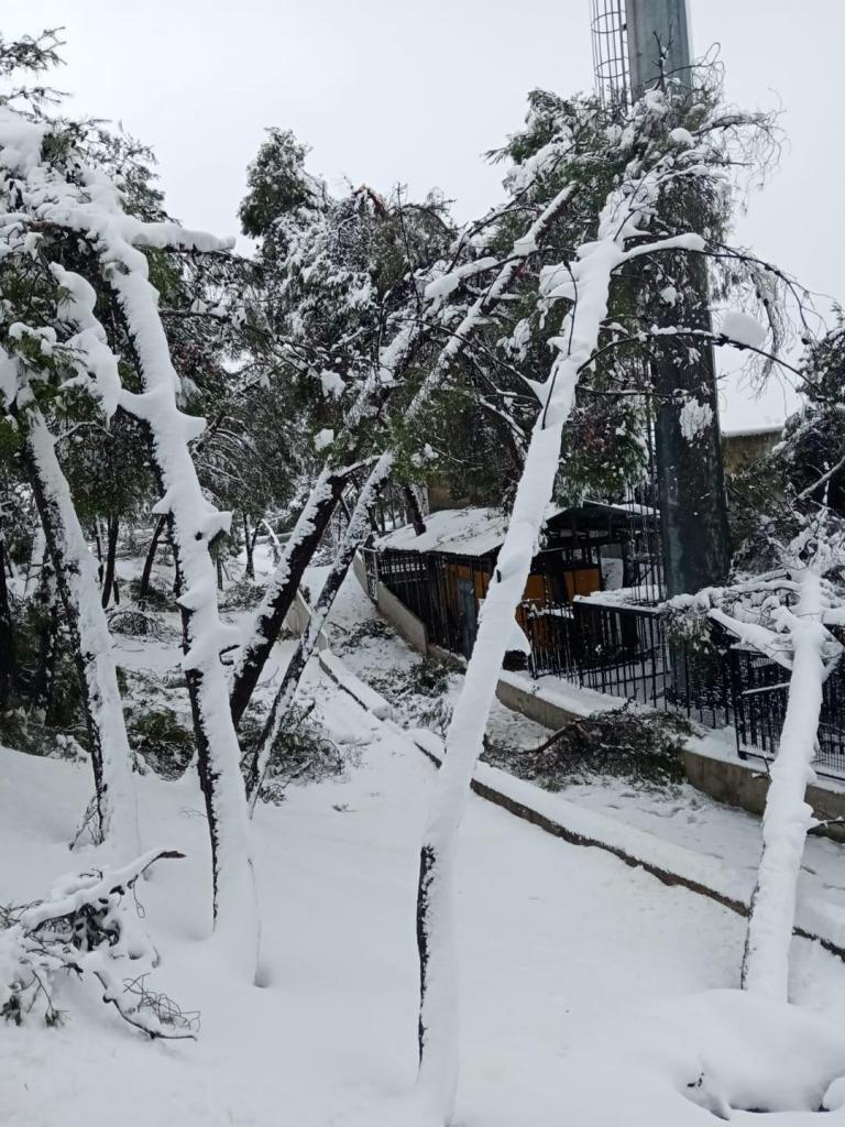 كما أن مديرية الصيانة والتشغيل تعمل على إزالة الثلوج عن المنشآت التي سقط الثلج عليها بكثافة بالإضافة لمعالجة الاضرار المادية الناجمة عن سقوط الأشجار الكبيرة".