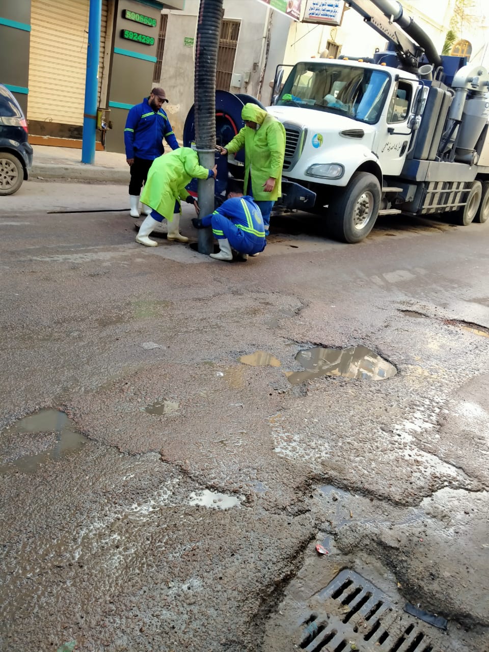 رفع تراكمات مياه الأمطار من شوارع الإسكندرية