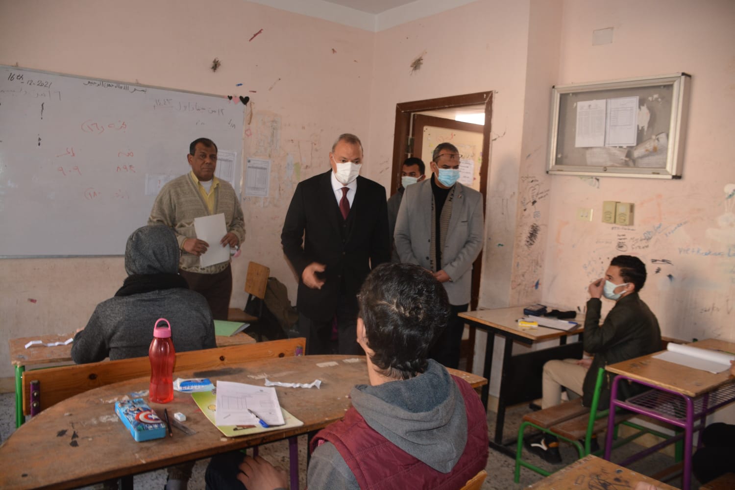واطمأن المحافظ خلال الجولة على تجهيز اللجان بالإضاءة والتهوية الجيدة ووجود طبيب أو زائر صحي بكل مدرسة للإشراف على اللجان وأنه تم اتخاذ كافة التدابير الاحترازية والوقائية لتعقيم وتجهيز لجان امتحانات الشهادة الإعدادية وفقا لتعليمات وزارة الصحة على مستوى المحافظة، حيث تحتوي اللجنة على 14 طالبا فقط وفق التعليمات الواردة من الوزارة بما يسمح بالتباعد بين الطلاب خلال الاختبارات، مشددا على ضرورة التعامل الهادئ مع الطلاب أثناء سير الامتحانات والتصدي لأي محاولات للغش فضلا عن التنسيق مع غرفة عمليات مديرية التربية والتعليم وغرفة عمليات المحافظة لتلقي أي شكاوى أو استفسارات تتعلق بأعمال الامتحانات.