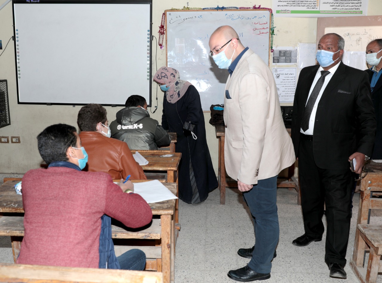 محافظ بني سويف يراجع الالتزام بإجراءات كورونا في لجان الإعدادية | صور
