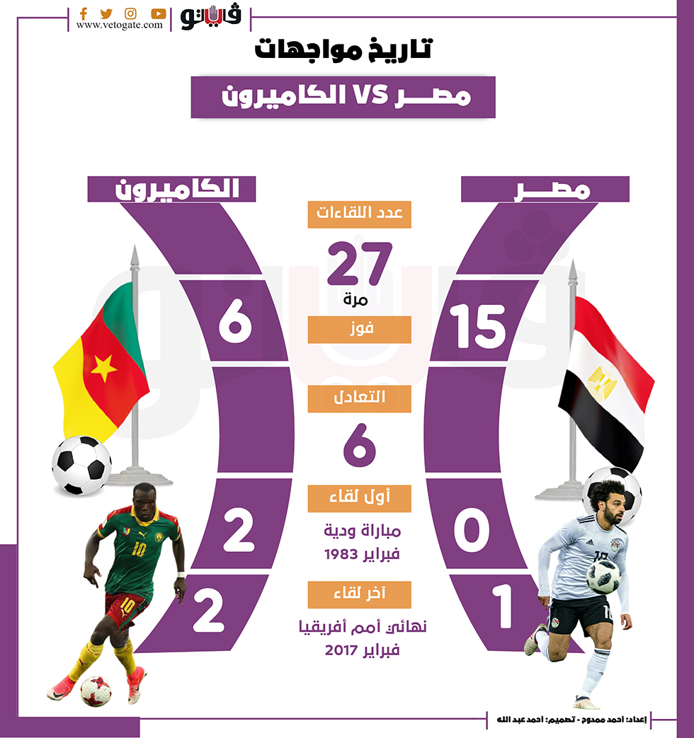 تاريخ مواجهات مصر والكاميرون | إنفوجراف الإثنين 31/يناير/2022 - 12:24 م 1/31/2022 12:24:36 PM شارك طباعة 18 حجم الخط شارك طباعة