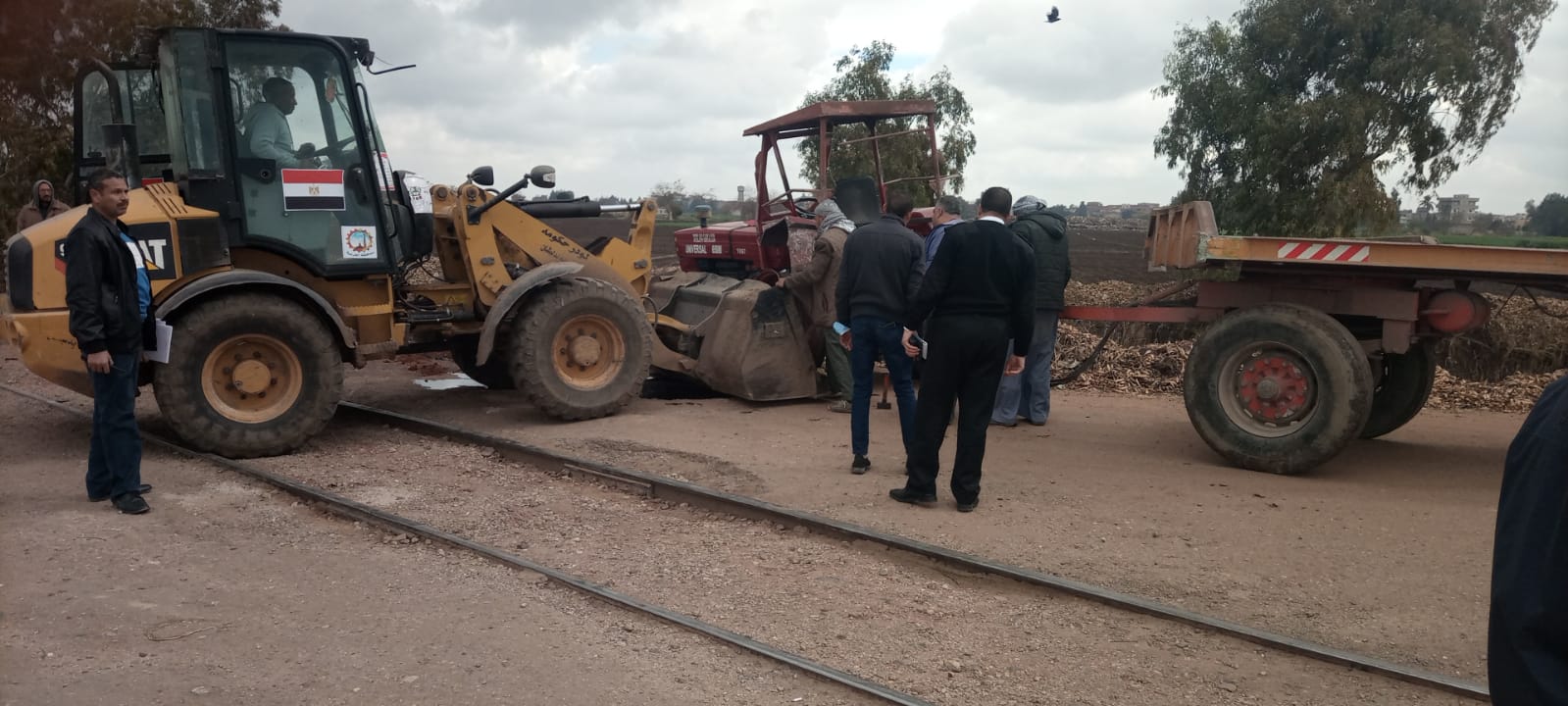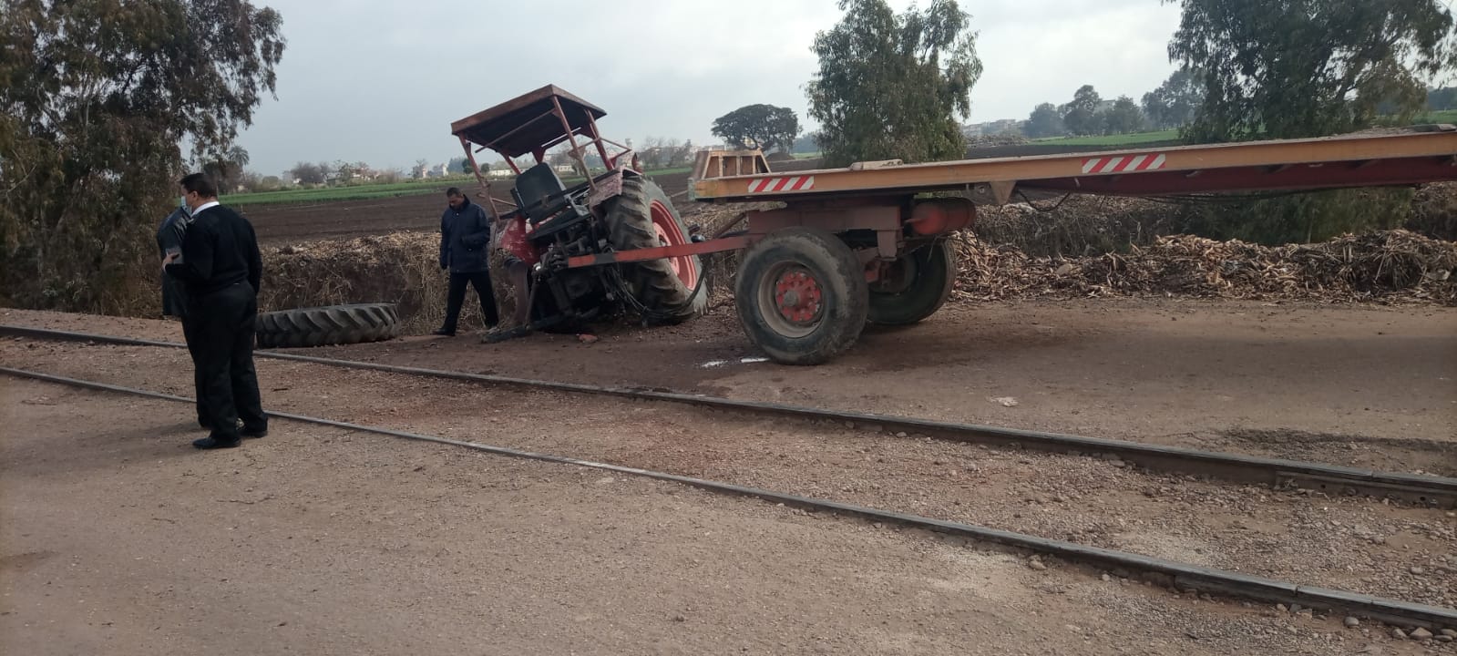 حيث اصطدم القطار بالجرار الزراعي وابعاده عن شريط السكة الحديد واستكمل القطار مسيرته دون توقف ولم يخرج عن القضبان.