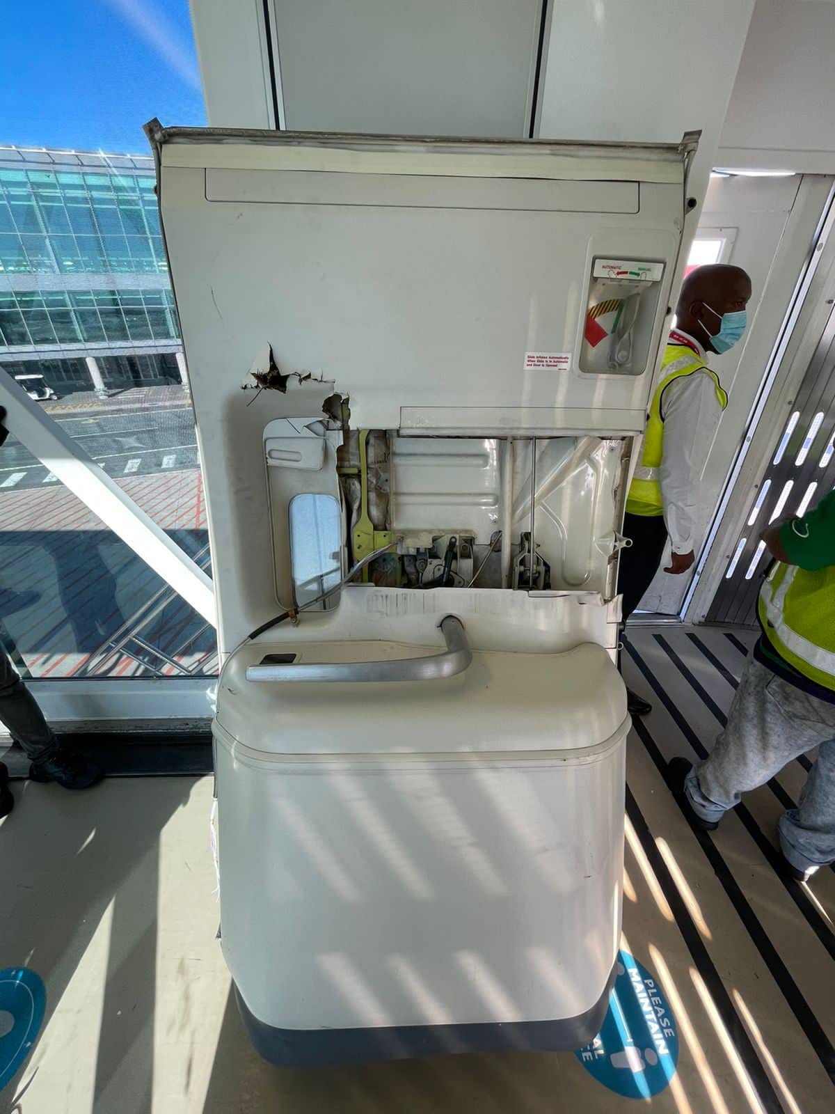 وحسب الموقع الأجنبي News24 فإن الباب انفصل تماما عن الطائرة بعد أن ترك مفتوحا خلال عملية السحب الروتينية للطائرة عقب هبوطها.