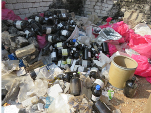 وعُثر بداخل المخزن المشار إليه على (15 طن نفايات طبية خطرة من مخلفات المستشفيات سابقة الاستخدام ومختلطة بمخلفات المستشفيات الخطرة والمحظور حيازتها أو تدويرها أو التعامل بها بغير ترخيص من الجهات المعنية).