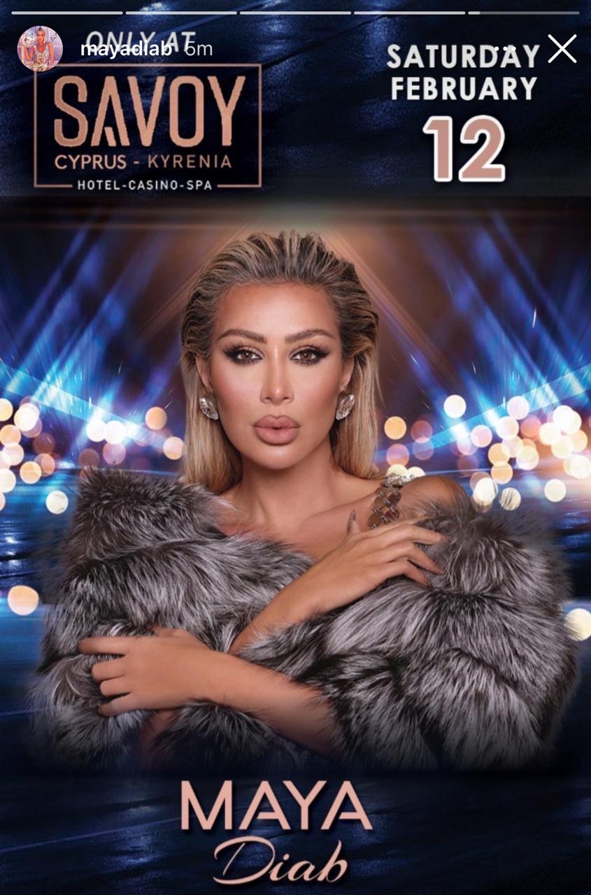 تستعد المطربة اللبنانية مايا دياب ، لإحياء حفلها القادم في قبرص يوم 12 من شهر فبراير المقبل؛ للاحتفال بموسم عيد الحب.