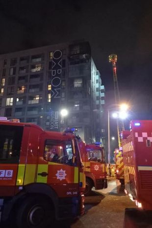 ودفعت فرقة إطفاء لندن بحوالي 70 من رجال الإطفاء ونحو 10 سيارات إطفاء، إلى مكان الحادث، بعد أن اشتعلت النيران في شقة مكونة من خمس غرف في الطابق الثامن من المبنى، مما أدى إلى تصاعد الدخان.