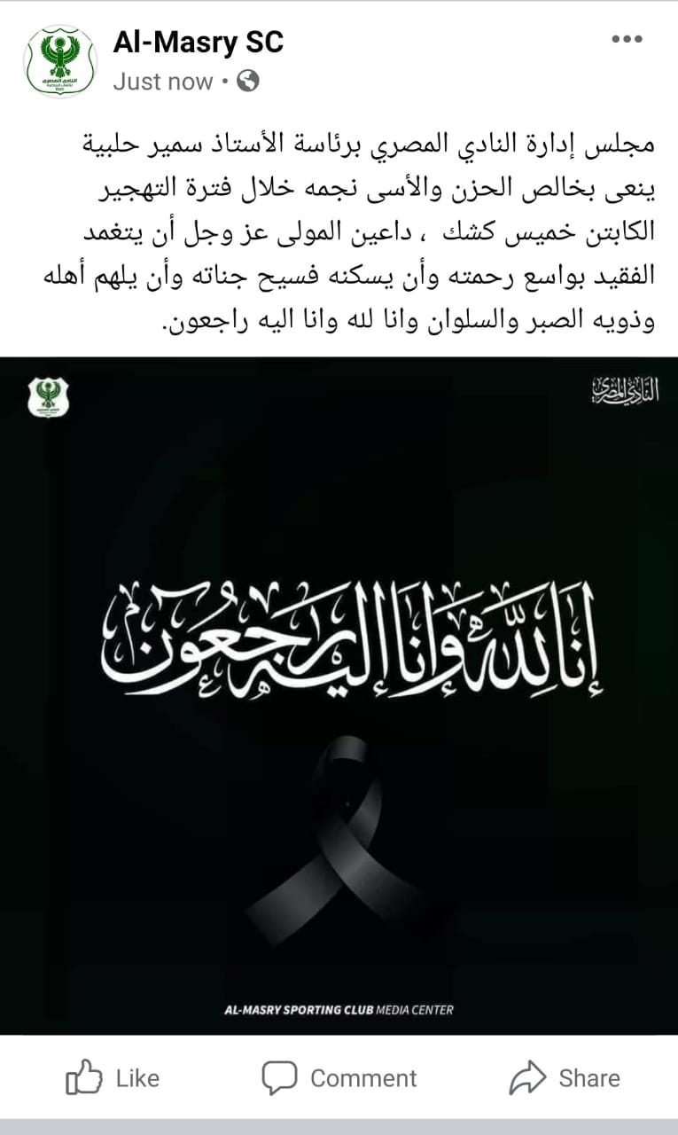 المصري البورسعيدي ينعي لاعبه السابق خميس كشك