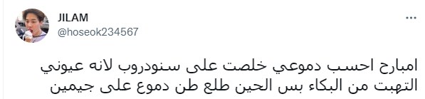 وقال JILAM "امبارح احسب دموعي خلصت على سنودروب لانه عيوني التهبت من البكاء بس الحين طلع طن دموع على جيمين"