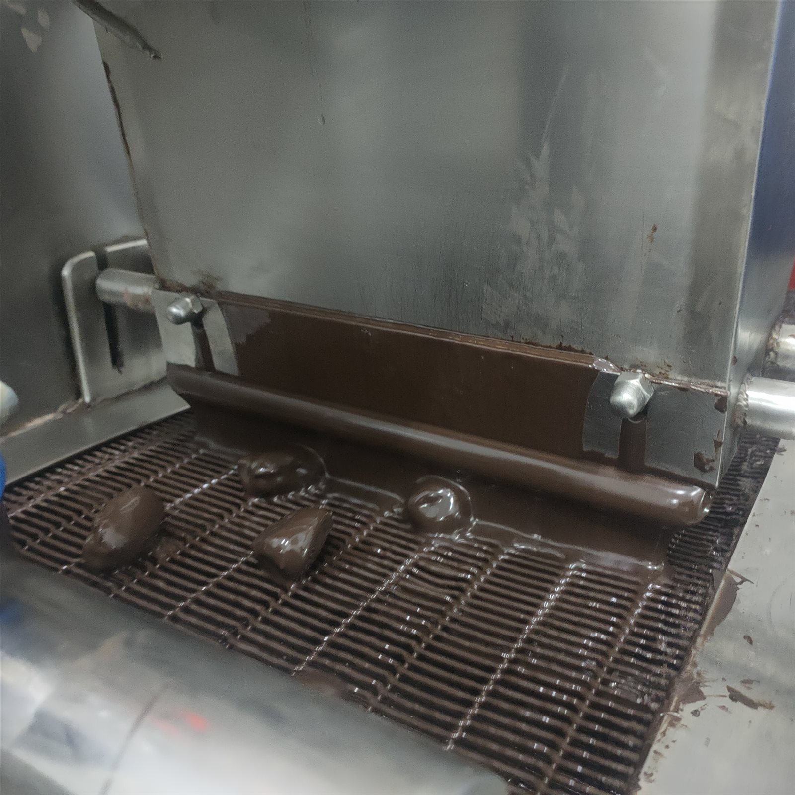 وتبدأ المرحلة الثالثة وهي مرور حبات التمر على خط التبريد والذى يساهم فى تجميد الشيكولاتة السائبة على التمور، وصلا إلى خروج التمور بشكلها النهائي.