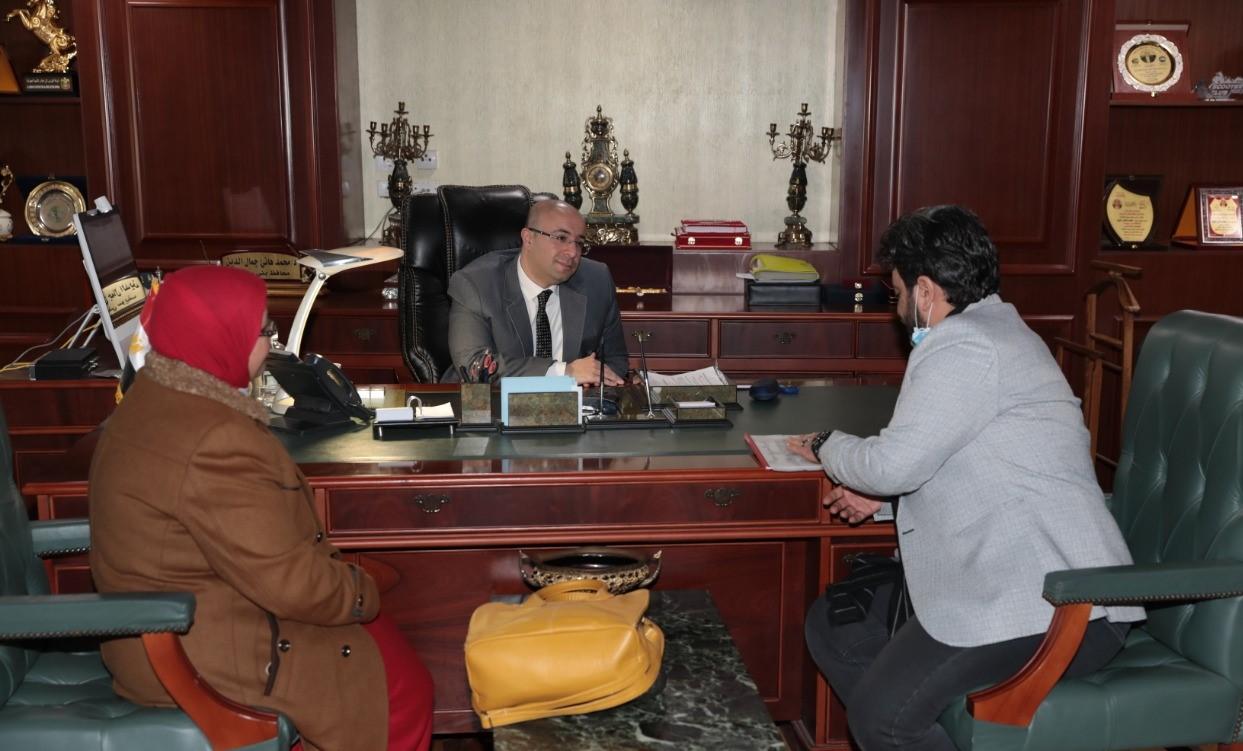 استقبل الدكتور محمد هاني غنيم محافظ بني سويف، بمكتبه، اليوم الثلاثاء، الدكتور محمد يحيى إسماعيل مدير فرع هيئة التأمين الصحي بالمحافظة، والدكتورة رضا محمود مدير إدارة الشؤون الطبية بالفرع، لمناقشة سير عمل منظومة التأمين الصحي.