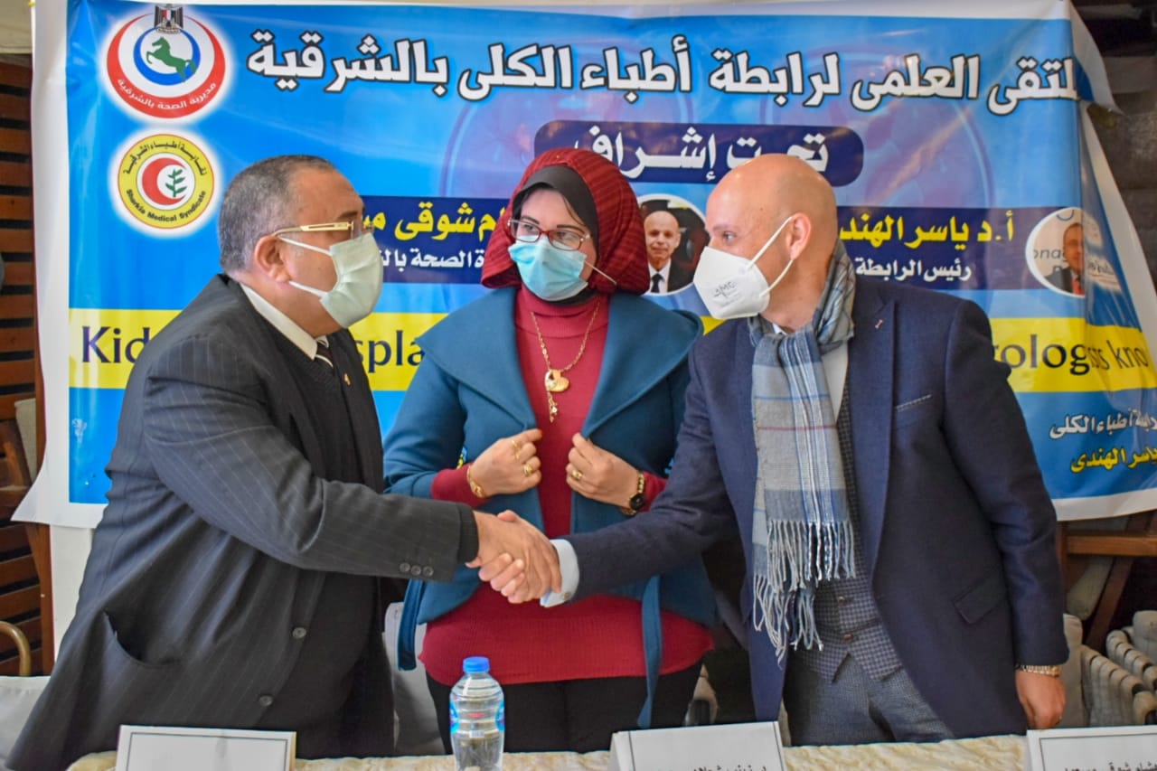 بالاضافة الى الدكتور محمد الصفطاوي أستاذ الكلي بالمنصورة، والدكتور شريف شاهين مدير عام الطب العلاجي بمديرية الشئون الصحية، والدكتورة سارة الشرقاوي منسق الرابطة ومدير وحدة الكلى الصناعي بالمديرية، والدكتور علي همام مدير وحدة الكلي بمستشفي الأحرار التعليمي، ولفيف من الأطباء يتجاوز ٧٠ طبيب من المقيمين والأخصائيين والاستشاريين، وزمالة الكلى بمديرية الصحة بالشرقية.