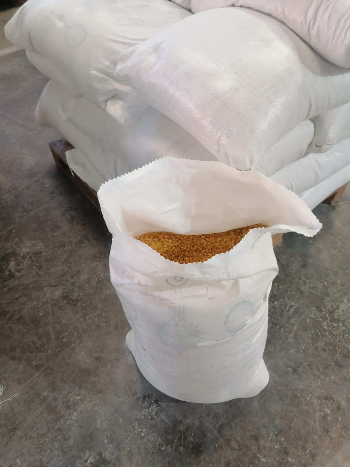 وتم ضبط والتحفظ على الكميات ١٠٥ شيكارة بلاستيك غير مدون عليها أي بيانات بداخلها مادة صفراء اللون تشبة ذرة الفيشار زنة الشيكارة الواحدة ٤٠ كجم باجمالي كمية قدرها ٤٢٠٠ كجم