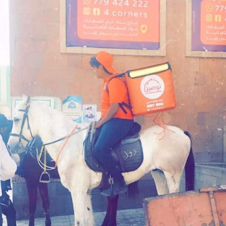 ولم تذكر "شركة توصيل" سببًا واضحًا للجوئها إلى الخيول كوسيلة مواصلات لموظفيها في توصيل الأطعمة إلى الزبائن.
