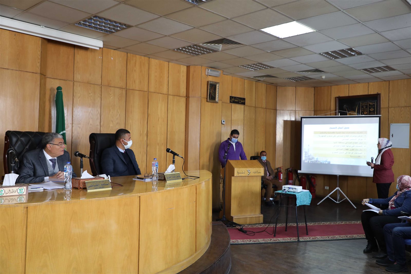 وقدمت مدير إدارة الاستثمار بالمحافظة، عرضا تفصيليا حول الميزة التنافسية للقطاع الصناعي على مستوى الجمهورية، مشيرة إلى أن القطاع الصناعي أصبح نهج استراتيجي للدولة وأولوية متقدمة فى خطط التنمية الاقتصادية المستدامة، كما تحدثت عن حوافز الاستثمار الصناعي، والقطاع الصناعي والهيكل الاقتصادي بالمحافظة، بالإضافة إلى شرح خريطة المناطق الصناعية بالمنيا، والمشروعات الصغيرة والورش الحرفية، كما استعرضت التحديات التي تواجه القطاع الصناعي، ومقترحات تطويره، بالاضافة إلى عرض الصناعات الواعدة بالسوق المصري.