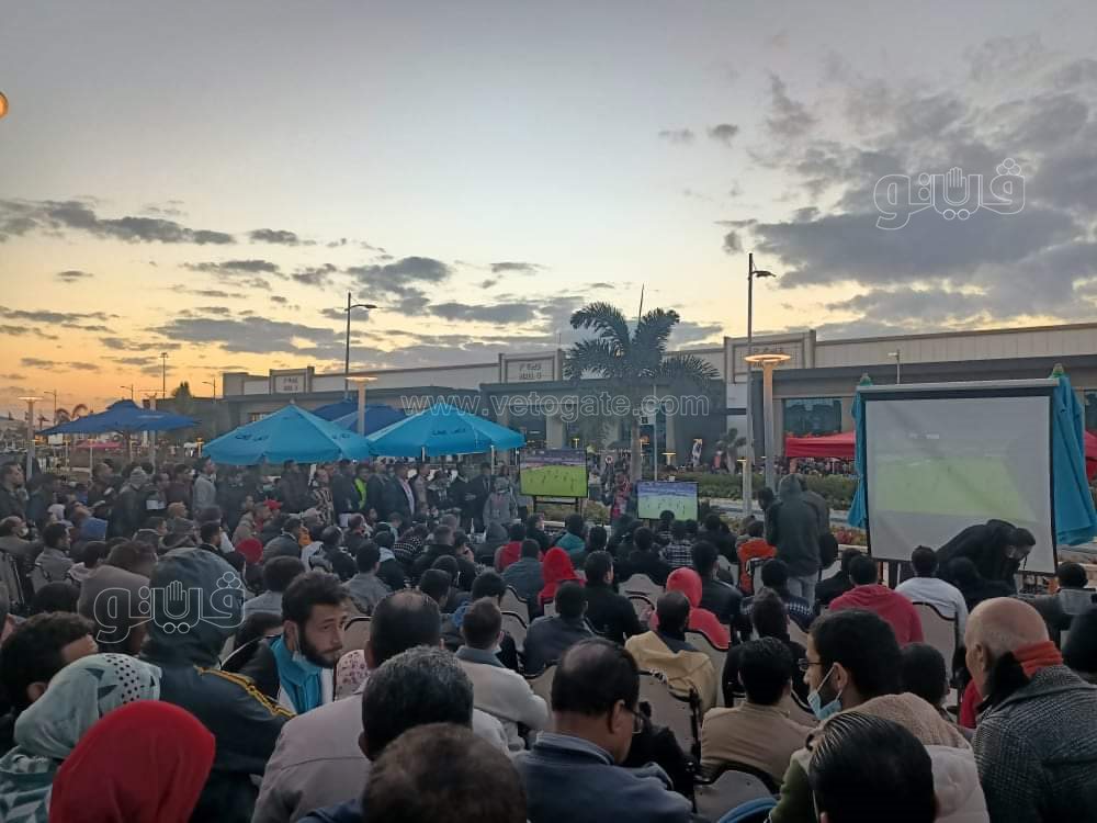 ووضعت شاشات كبيرة لعرض المباراة، وكراسي لجمهور وزوار المعرض لمتابعة اللقاء الذي ترقبته الجماهير المصرية للفوز والصعود لمباراة نصف نهائي البطولة والتي تقام في دولة الكاميرون.