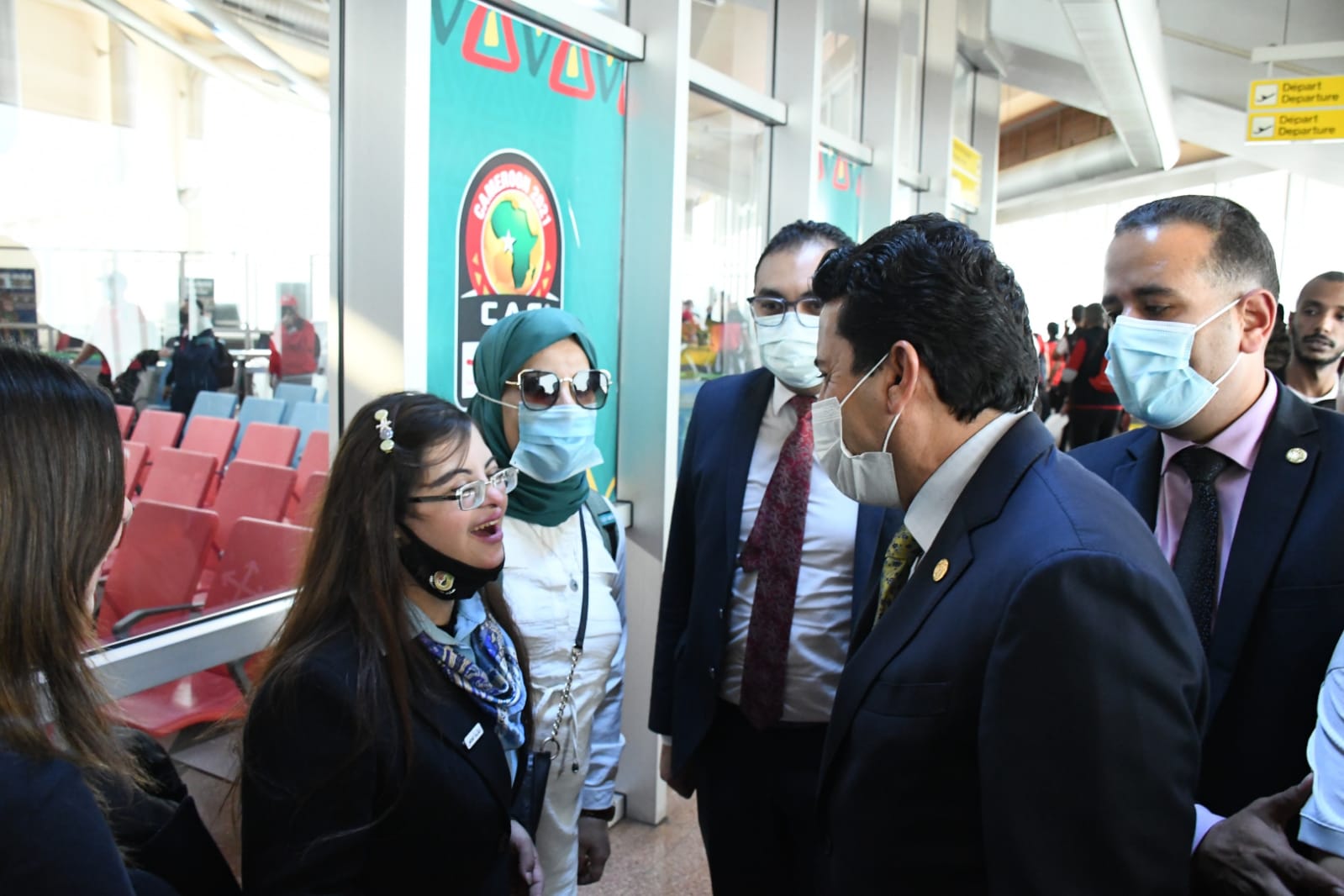 واطمأن وزير الشباب والرياضة على كافة الترتيبات المتعلقة ببعثة المنتخب الوطنى استعدادًا للمباراة، واجراءات استقبال الجماهير المصرية وتوجهها إلى استاد المباراة، وعودتها إلى المطار عقب انتهاء المباراة.