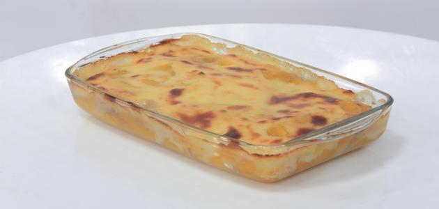 - نصب فوقها كمية البشاميل كاملة، مع تسوية السطح جيدا.