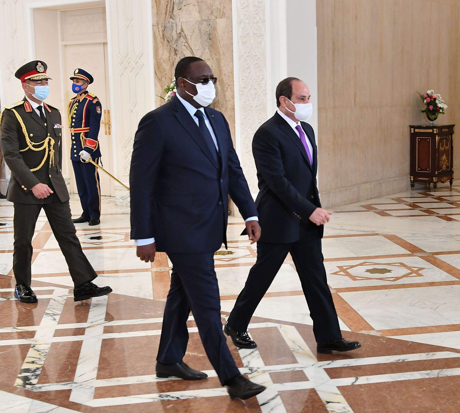 وتتزامن زيارة أخي الرئيس "ماكي سال" مع قرب تسلم سيادته رئاسة الاتحاد الأفريقي، وأود أن أتقدم لسيادته بالتهنئة على قرب توليه لتلك المسئولية، والتأكيد على دعمنا الكامل لسيادته خلال فترة رئاسته للاتحاد وثقتنا في قيادته الحكيمة للعمل الأفريقي المشترك، ونجاحه في قيادة القارة خلال تلك المرحلة التي تشهد العديد من التحديات، وعلى رأسها تعزيز جهود احتواء تفشي فيروس كورونا، والقضاء على خطر التطرف والإرهاب، إضافةً إلى تفعيل التكامل الاقتصادي والتجاري بين دول القارة.