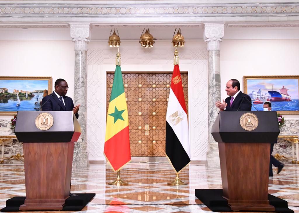 ومن جانبه، أعرب رئيس السنغال عن تقدير بلاده للعلاقات التاريخية المتميزة مع مصر، مؤكدًا الحرص على تطوير تلك العلاقات في مختلف المجالات، لاسيما التعاون التجاري والاقتصادي، ليتناسب مع عمق وتميز العلاقات السياسية بين البلدين، ومشيدًا في هذا الإطار بنشاط الشركات المصرية في السنغال في قطاعات التشييد والبناء والسياحة والبنية الأساسية، مع الإعراب عن تطلعه لزيادة الاستثمارات المصرية في بلاده، فضلًا عن تعظيم الدعم الفني الذي تقدمه مصر لأبناء السنغال في مجالات بناء القدرات، خاصةً في ضوء الطفرة التنموية الهائلة التي تشهدها مصر حاليًا والمشروعات القومية الكبرى الجارية والمخطط إنشاؤها.