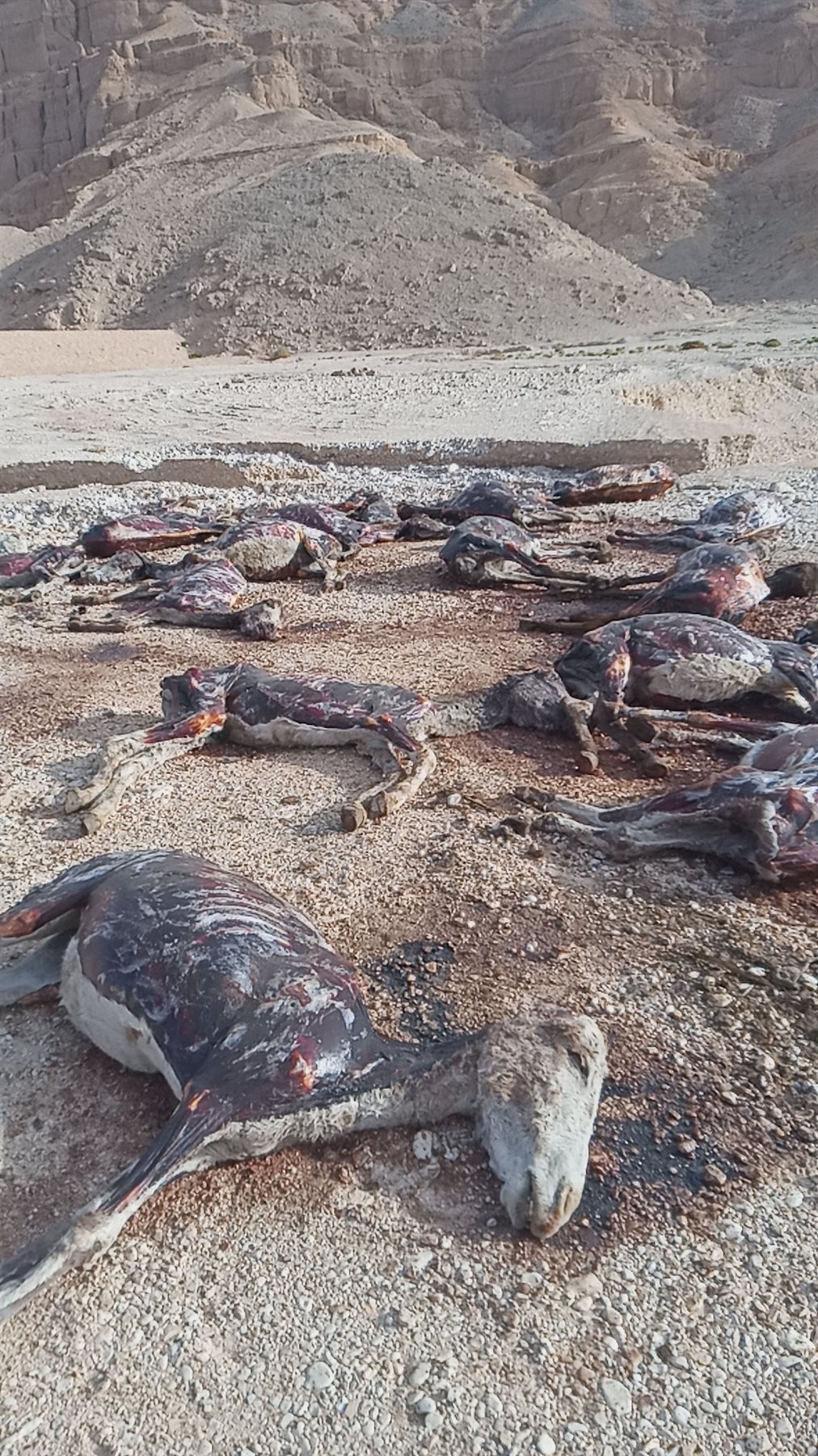 حصلت "فيتو " على صور جديدة لـ 58 حمارا مذبوحا في منطقة الجبل الشرقي بالظهير الصحراوى بنجع مازن شرق بمركز دارالسلام بمحافظة سوهاج بعد سلخ الجلد منها