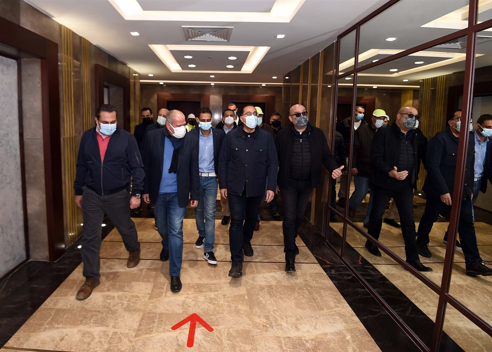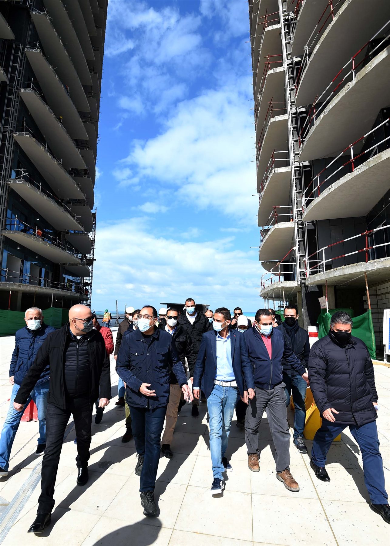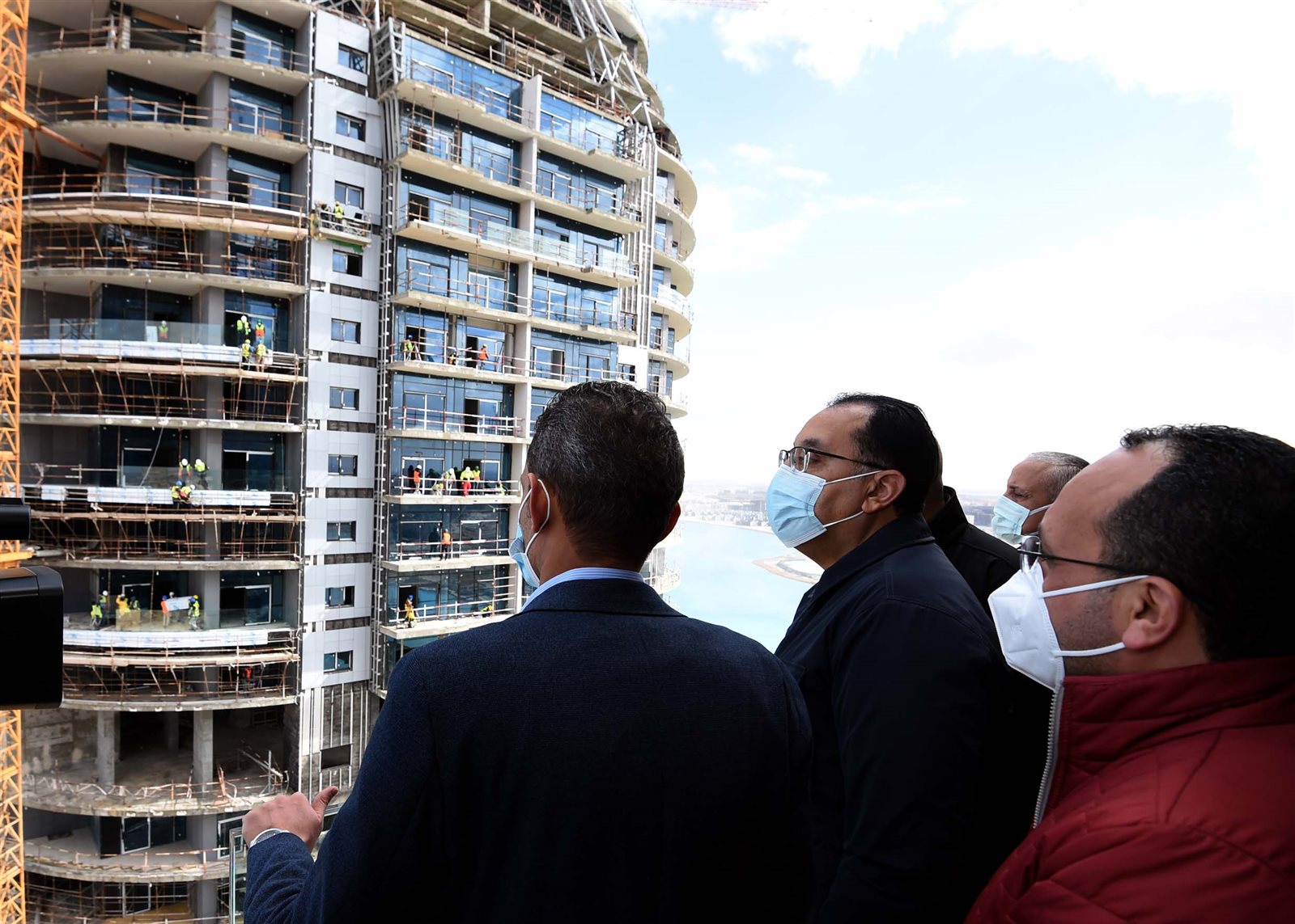 وصعد الدكتور مصطفى مدبولي والدكتور عاصم الجزار ومرافقوهما أعلى أحد الأبراج في نقطة مشاهدة مرتفعة تتيح رؤية شاملة للمنطقة للتعرف على سير التنفيذ، كما تفقد رئيس الوزراء نماذج للوحدات التي تم الانتهاء من تشطيبها بأحد الأبراج الشاطئية للتأكد من سرعة التنفيذ وجودته.