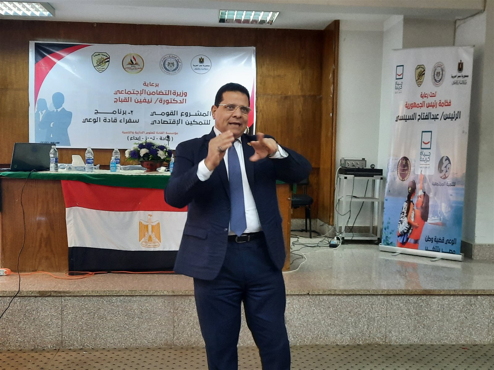 من جانبه أكد الدكتور أحمد الشريف رئيس مؤسسة القادة للعلوم الإدارية، على إن هذا البرنامج يأتي ضمن برنامج " وعي " التابع لوزارة التضامن الاجتماعي، والذى تعمل من خلاله على مشروعين هامين وهما قرى المبادرة الرئاسية "حياة كريمة"، و"ملف العشوائيات".