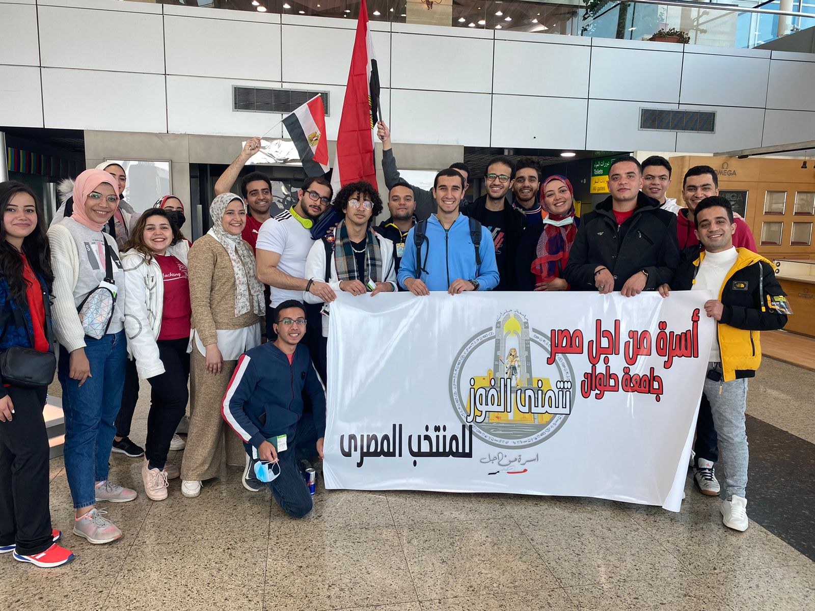 50 طالبا وطالبة من جامعة حلوان يشجعون المنتخب في الكاميرون