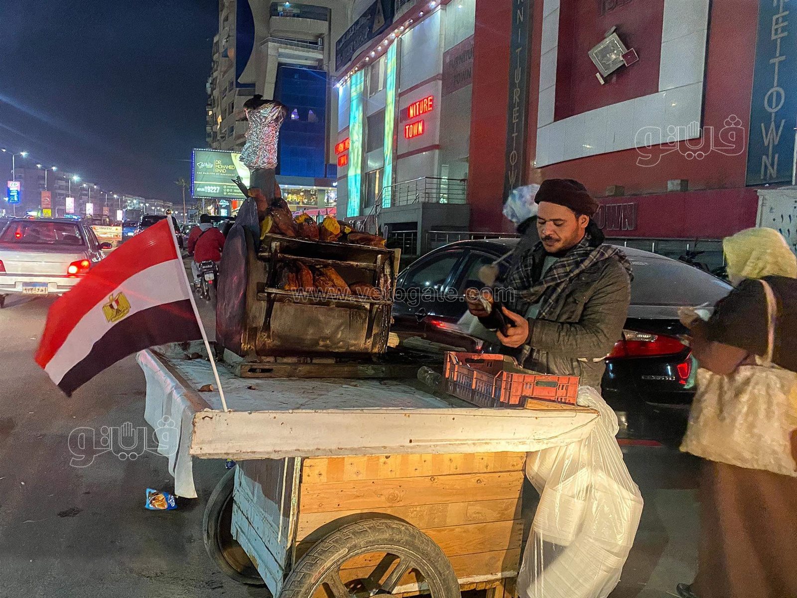 كما حرص الباعة الجائلون بالمنطقة على وضع أعلام مصر على عربات البيع الخاص بهم تشجيعا منهم للمنتخب المصري.