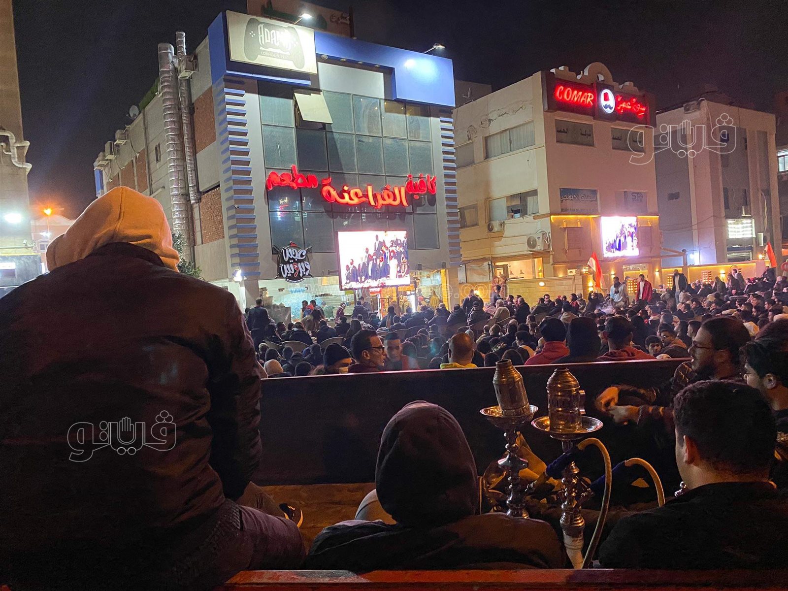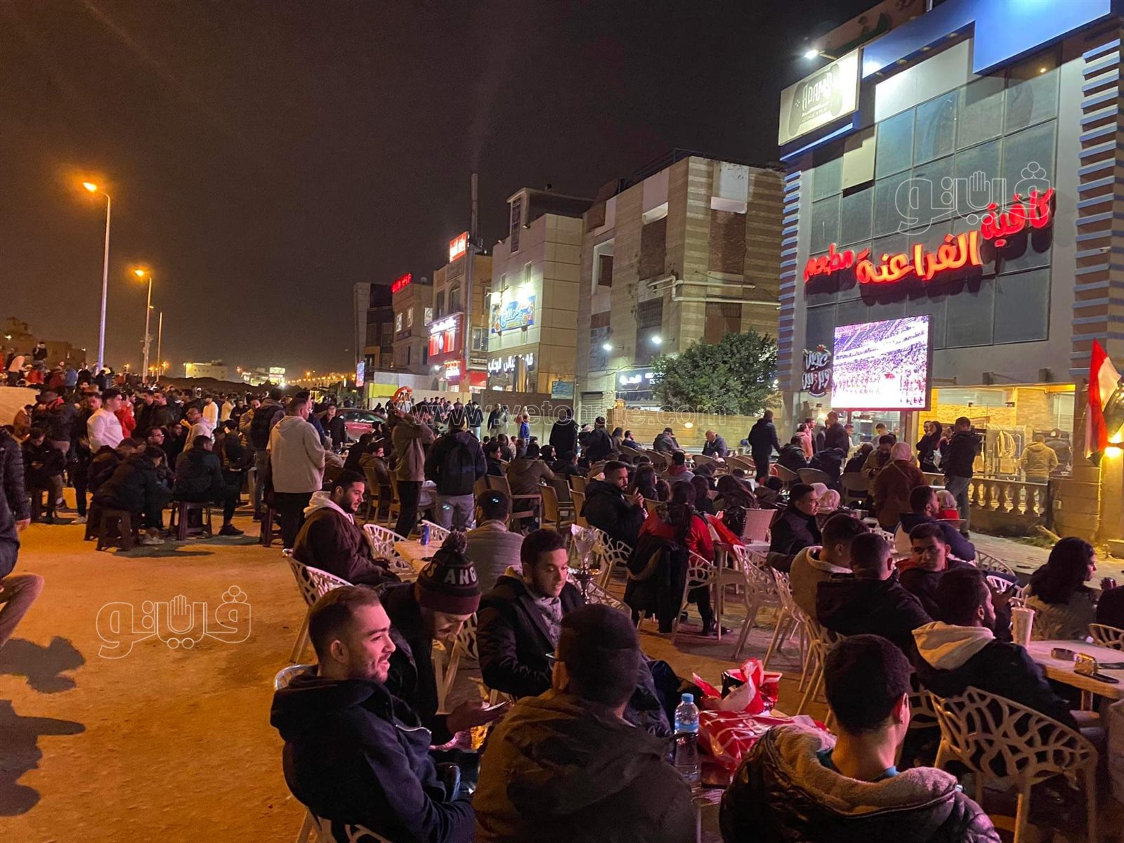 كما لجأ مواطنون إلى افتراش الأرض والأسواق أمام شاشات التي تعرض مباراة المنتخب بعد حجز جميع الكراسي.