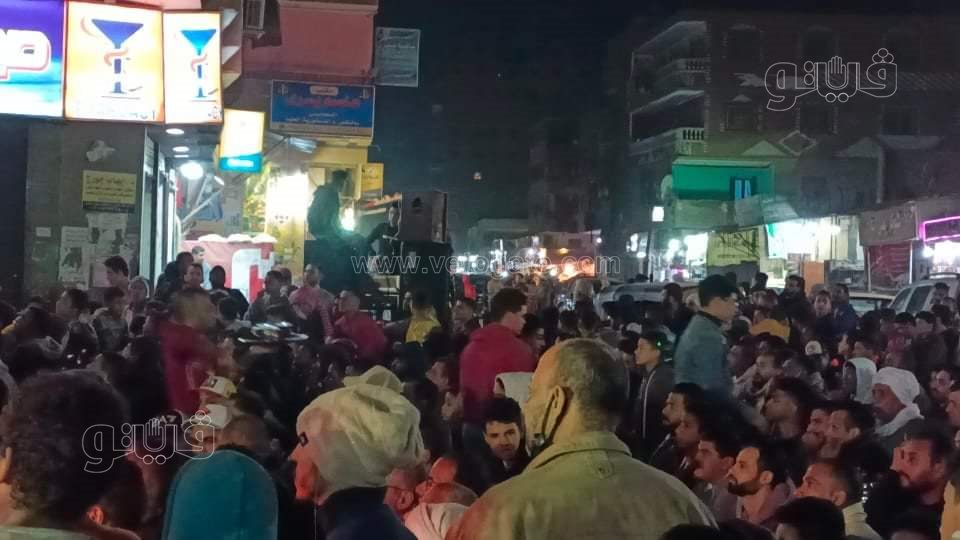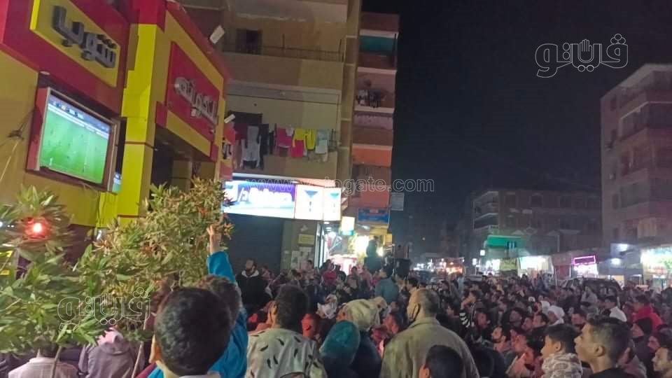 وحرص المواطنين على تشجيع المنتخب بعد انتهاء الشوط الأول بأغاني المهرجانات وإشعال الألعاب النارية ورفع أعلام مصر.