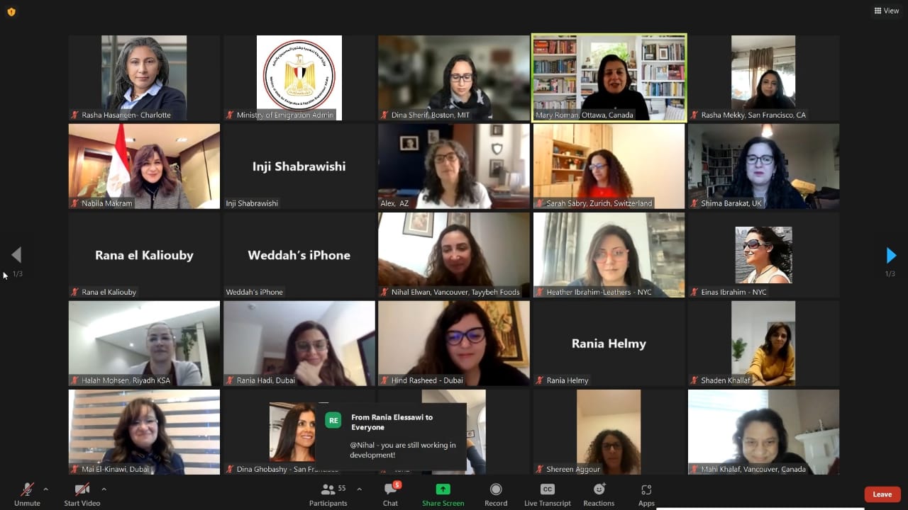 وفي أعقاب ذلك، رحبت الوزيرة بالمشاركات جميعا وأعربت عن سعادتها بالتواصل معهن وفخرها بهن، مقدمة الشكر إلى الدكتورة دينا شريف، الخبير المصري بالولايات المتحدة الأمريكية والمدير التنفيذي لمركز لاجاتوم التابع لجامعة MIT، على تجميعهن وتقديمن إلى وزارة الهجرة للتعرف عليهن والاطلاع على رحلة كفاحهن للاستفادة منها، وأكدت سيادتها اهتمام الوزارة بتسليط الضوء على النابغات من المصريات المهاجرات، ولفتت إلى تنظيم الوزارة لمؤتمر "مصر تستطيع بالتاء المربوطة" عام 2017 الذي جمع تحت مظلته هؤلاء المصريات من دول العالم، مشددة على أن المرأة المصرية تعيش الآن عصرًا ذهبيًا في عهد الجمهورية الجديدة تحت قيادة فخامة السيد الرئيس عبد الفتاح السيسي وهذا يتضح من تمثيلها في الحكومة من خلال 8 حقائب وزارية وكذلك في مقاعد البرلمان.
