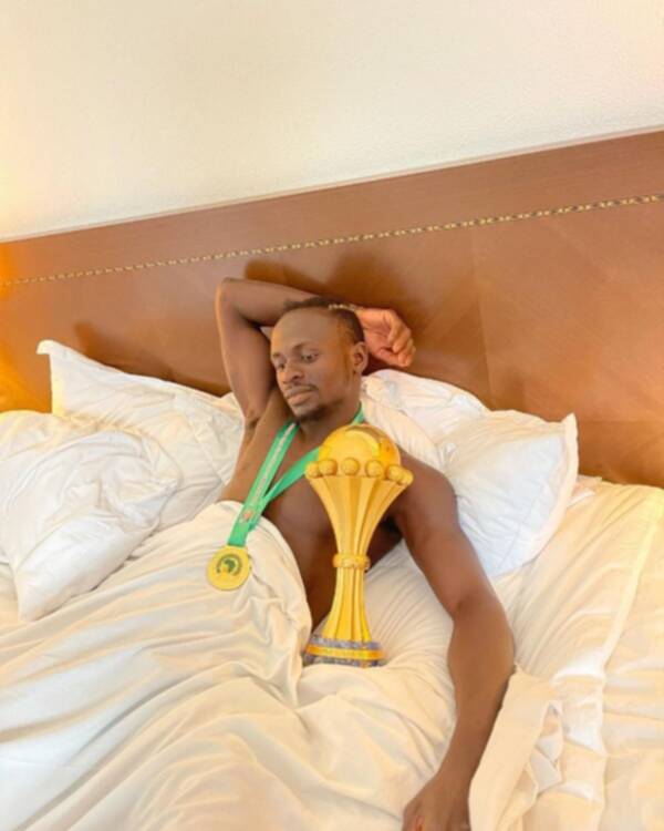 ونشر ماني، على حسابه بشبكة "إنستجرام"، صورته مع كأس أفريقيا والميدالية الذهبية على الفراش، وكتب عليها: "الحمد لله".