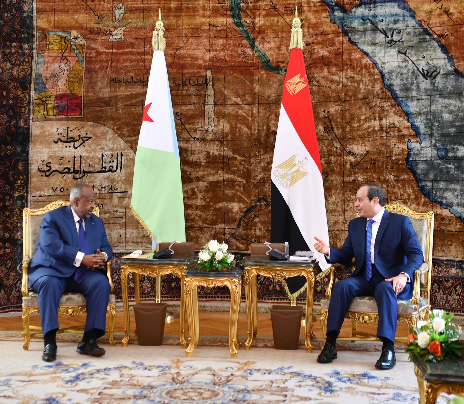 وقال السفير بسام راضي المتحدث الرسمي باسم رئاسة الجمهورية أن أن اللقاء شهد عقد مباحثات منفردة بين الرئيسين، أعقبتها مباحثات موسعة بحضور وفدي البلدين، حيث رحب الرئيس بزيارة أخيه الرئيس "جيله" إلى مصر، معربًا عن التقدير للعلاقات التاريخية الوثيقة والتعاون المشترك ووحدة الرؤى التي تربط بين البلدين الشقيقين، ومؤكدًا حرص مصر على تعزيز العلاقات وترسيخ التعاون الاستراتيجي مع جيبوتي في شتي المجالات لإقامة شراكة مستدامة بين البلدين، بما يعكس مزيدًا من التنسيق والتعاون فيما يتعلق بقضايا الأمن الإقليمي والعمل التكاملي لإرساء السلام والاستقرار في المنطقة.