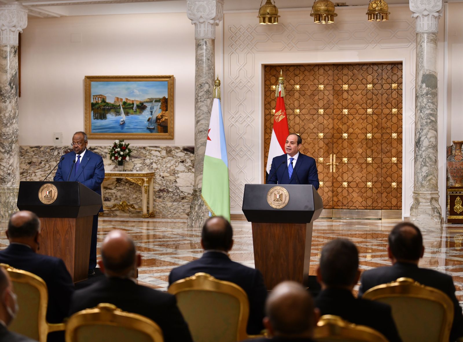 وألقي الرئيس عبد الفتاح السيسي كلمة خلال المؤتمر الصحفي المشترك مع رئيس جمهورية جيبوتي جاءت كالتالي:
