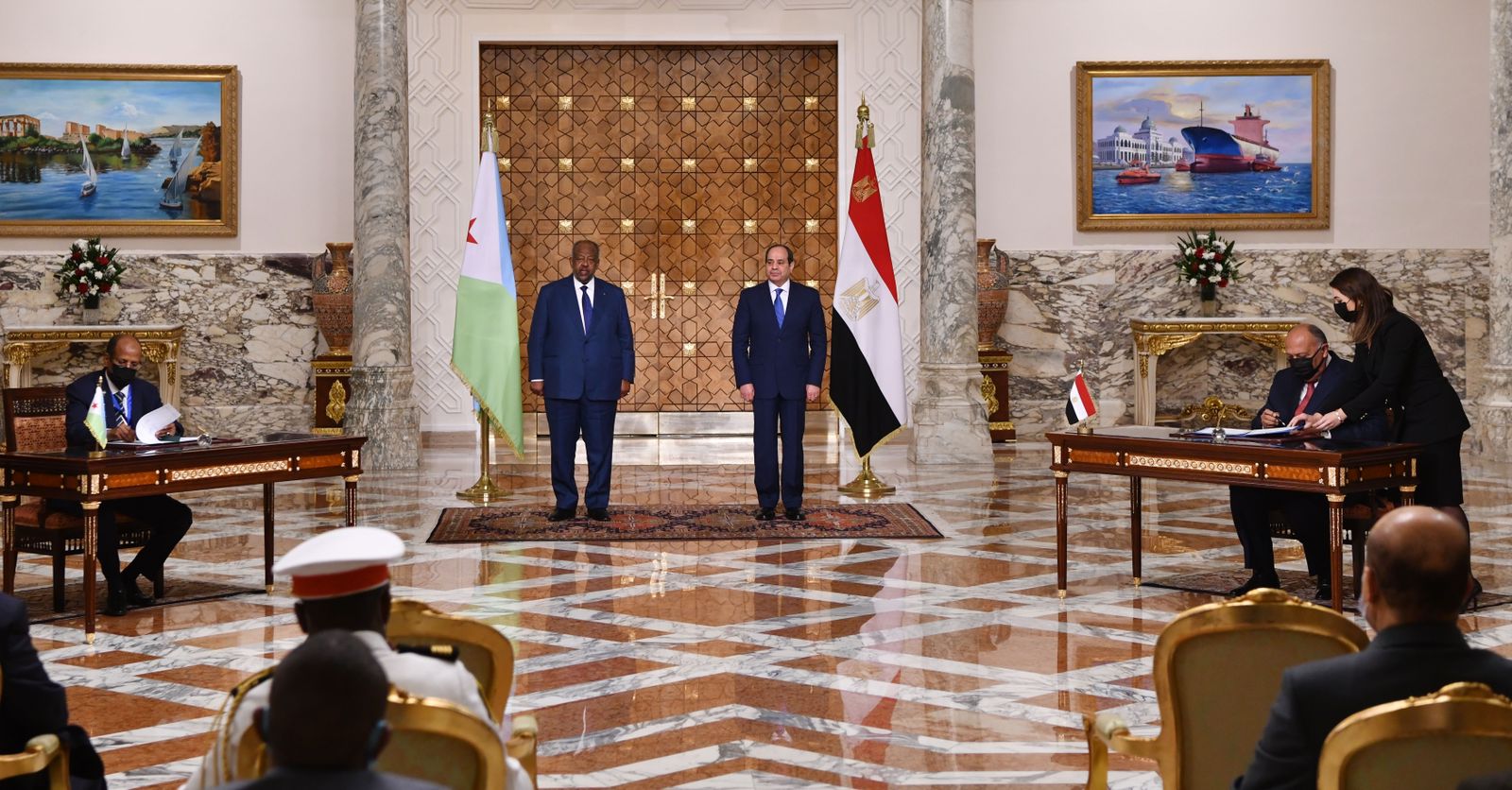 وفي ختام المباحثات، شهد الرئيسان مراسم التوقيع على عدد من مذكرات التفاهم بين البلدين الشقيقين في مجالات التشاور السياسي، والطاقة والموارد المتجددة، وإنشاء المنطقة اللوجستية المصرية في جيبوتي.