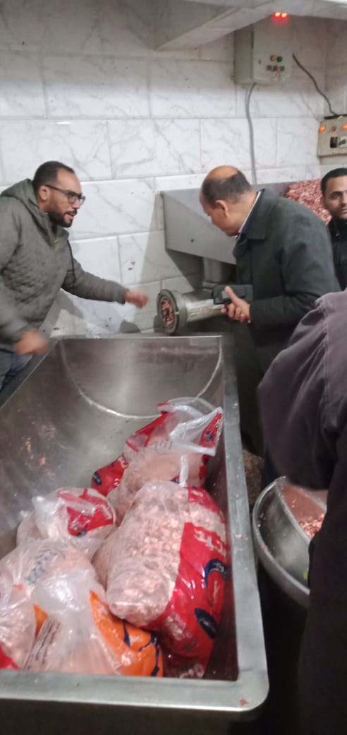 كما تمت مصادرة عدد ٤ ثلاجات كبيرة وعدد ٢ ماكينة فرم وعدد ٢ عجانة وميزان وماكينة تقطيع لحوم وإيداعها مخازن حي شمال الجيزة.