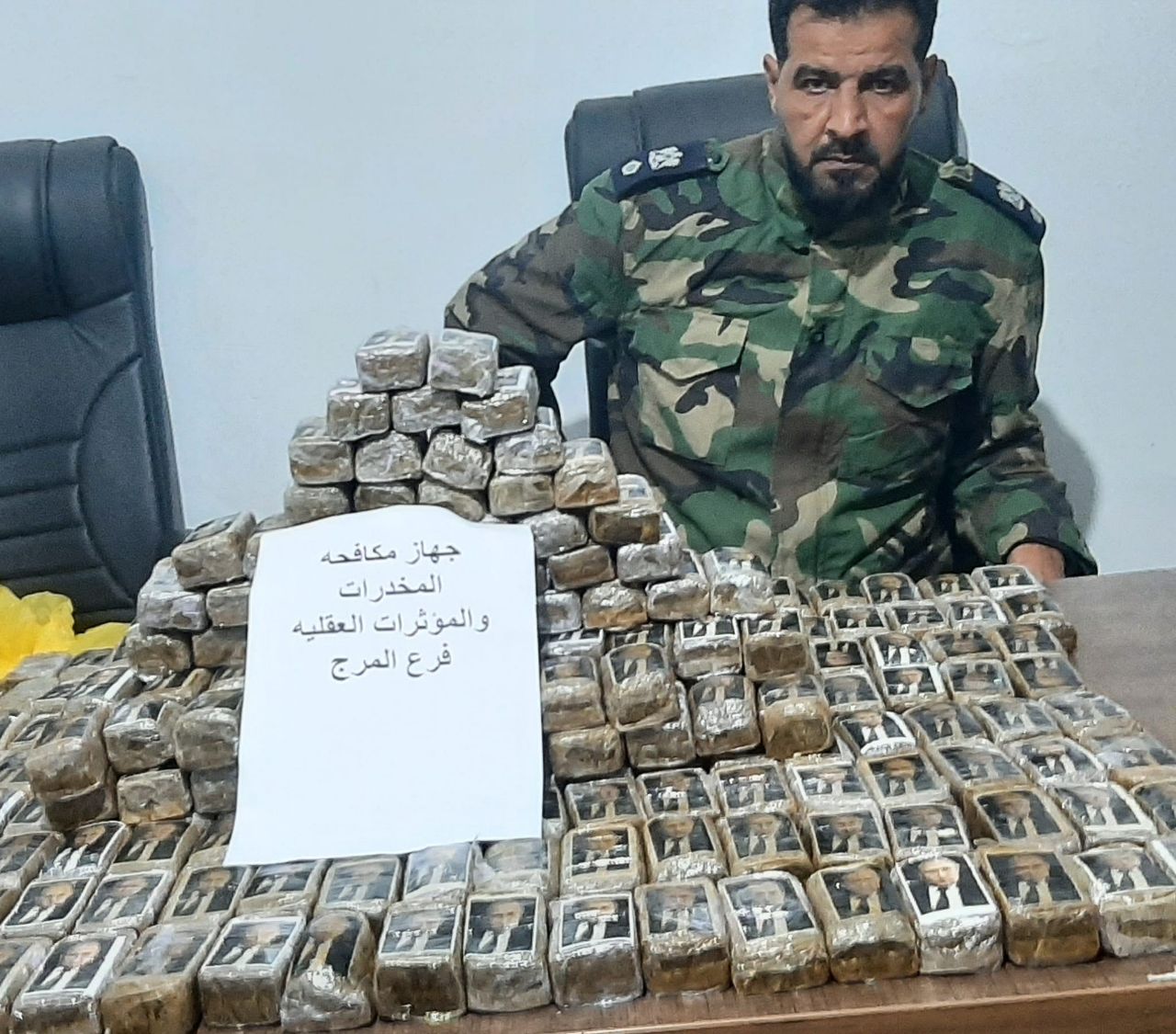 أعلنت السلطات الليبية، أمس الإثنين، أنها ضبطت في شمال شرق البلاد أكثر من 300 رزمة من الحشيش، وقد أُلصقت على كل منها صورة للرئيس الروسي فلاديمير بوتين.