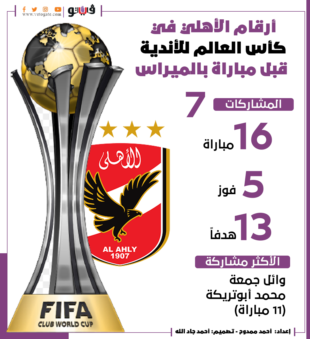 أرقام الأهلي في كأس العالم للأندية قبل مباراة بالميراس | إنفوجراف الثلاثاء 08/فبراير/2022 - 02:21 م 2/8/2022 2:21:47 PM أحمد ممدوح شارك طباعة 18 حجم الخط شارك طباعة