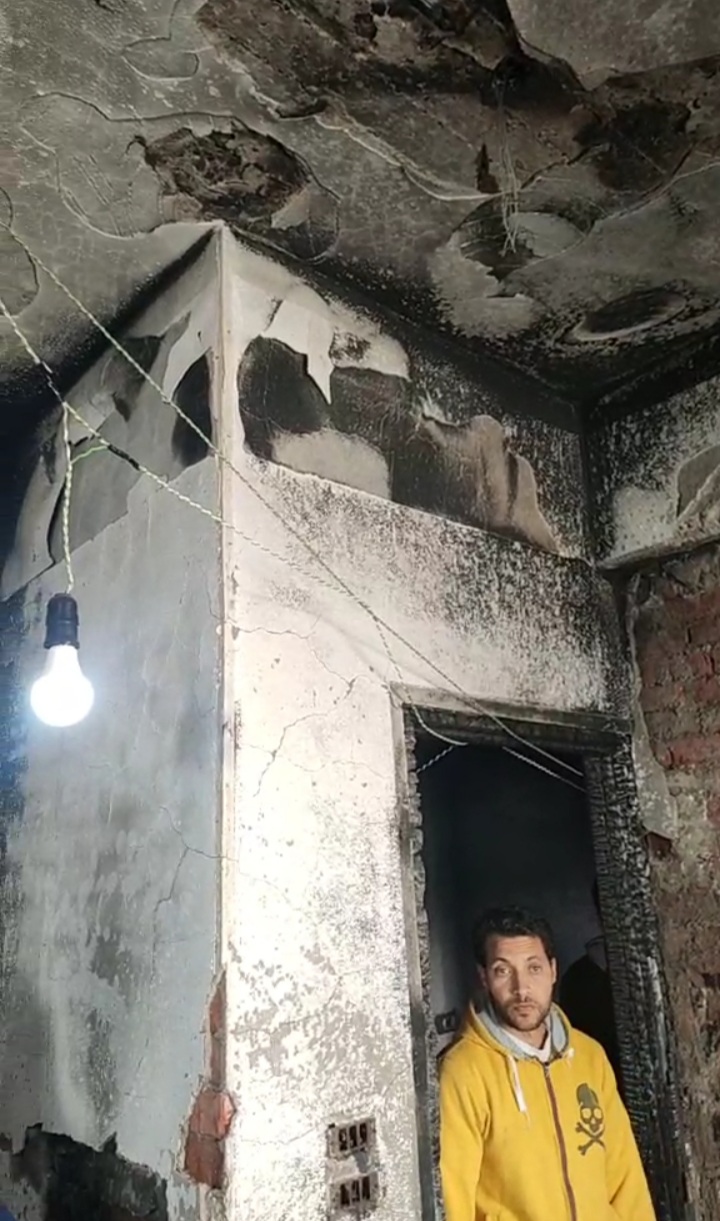 بينما روت زوجته قائلة: بيتي ولع واتبهدلنا وقاعدين في الشارع والنيران طالتني لأكثر من مرة.