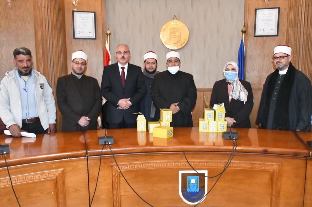 وفد وزارة الأوقاف يسلم سلسلة "رؤية" لرئيس جامعة قناة السويس