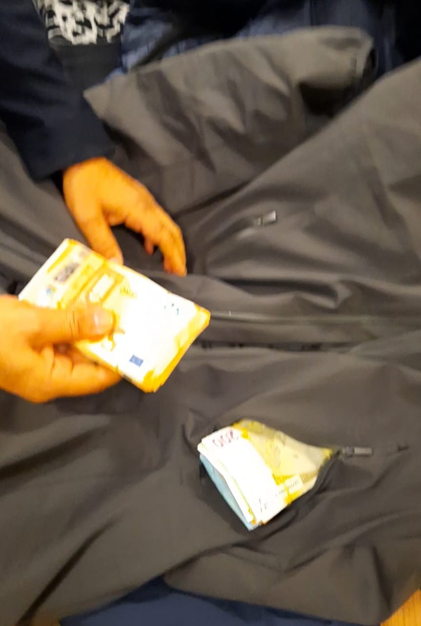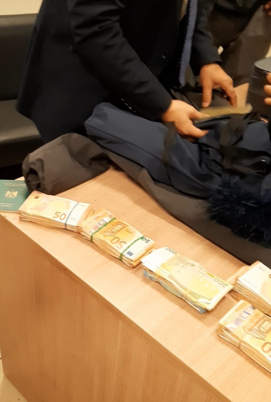 وأضافت المصادر أن عمرو عطية الدسوقي مدير الحركة المشرف على الصالة، كلف محمود طلعت عزوز مأمور الجمرك، بتفتيش حقائب الراكب يدويا، مما اسفر ضبط 50 ألف و740 يورو في رزم داخل جيوب الجواكت بحقيبة الراكب، بالمخالفة لقانون البنك المركزي والذي حدد الحد الأقصى للسفر بالاموال بما يعادل ١٠ آلاف دولار أمريكي مع الإفصاح عنها لرجال الجمارك.