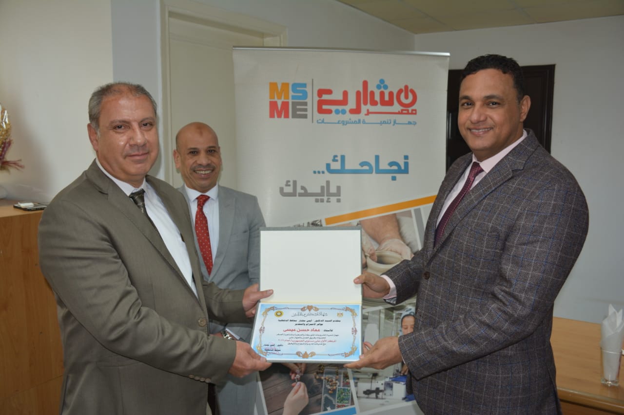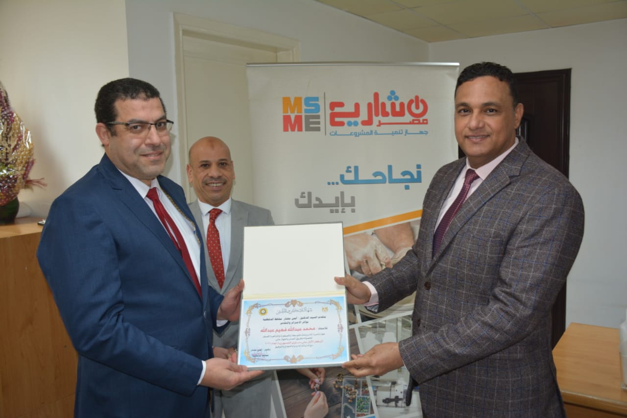 وأكد "المحافظ " علي دعمه الكامل لتوجه الدولة في إقامة المشروعات الصغيرة والمتوسطة ومتناهية الصغر وذلك لتوفير فرص عمل للشباب والقضاء علي البطالة ونشر ثقافة العمل الحر حتى تتبوأ مصر مكانتها اللائقة بها فى الانتاج والتصدير لكافة المنتجات بما يساهم فى تعظيم الاقتصاد الوطنى وزيادة الناتج القومى.