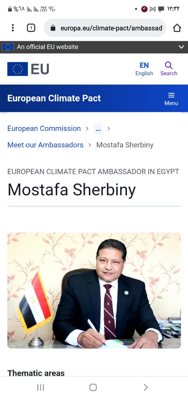 اختيار الاتحاد الأوروبي، الدكتور مصطفي الشربيني رئيس مبادرة المليون شاب متطوع للتكيف المناخي، سفيرا لميثاق الاتحاد الأوروبي ليكون جسرا بين المجتمع المدني والمفوضية الأوروبية.